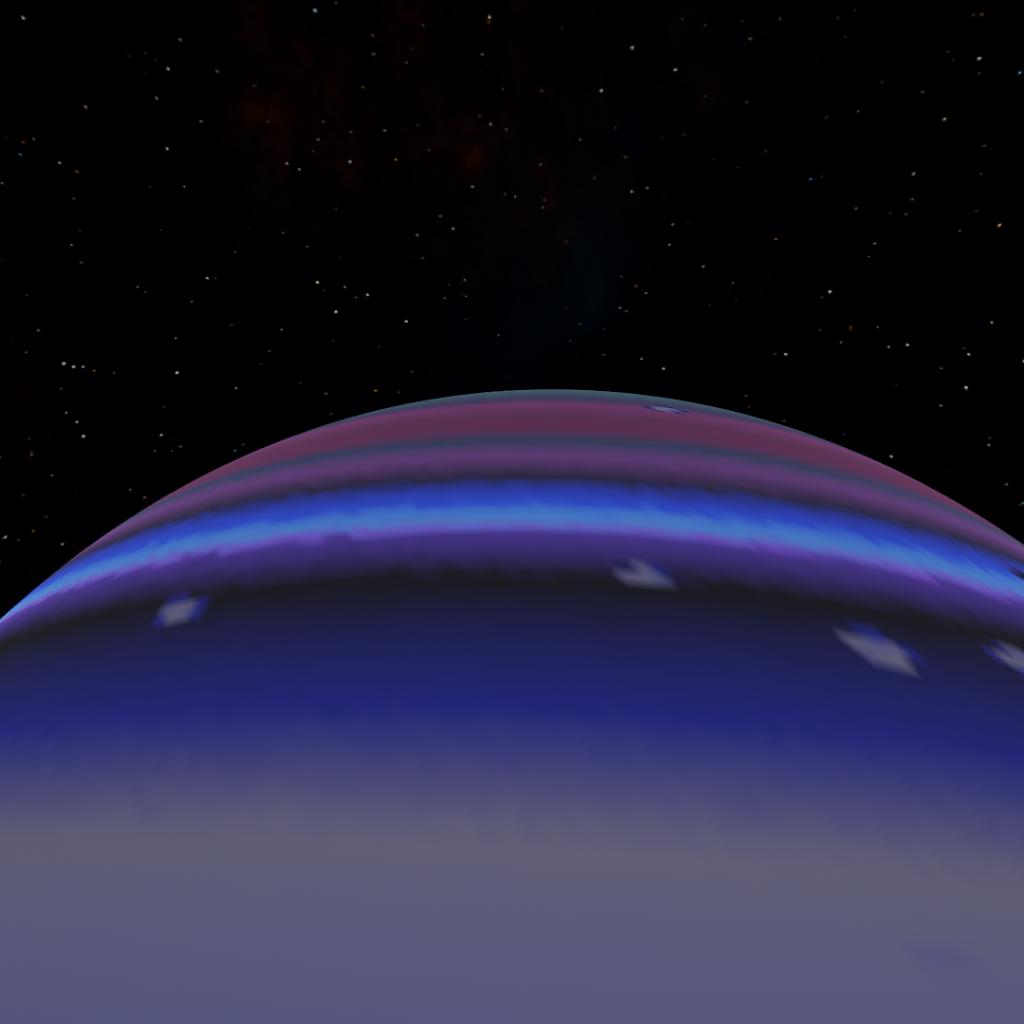 A ringless gas giant with a very chaotic top layer of clouds and enormous storms.