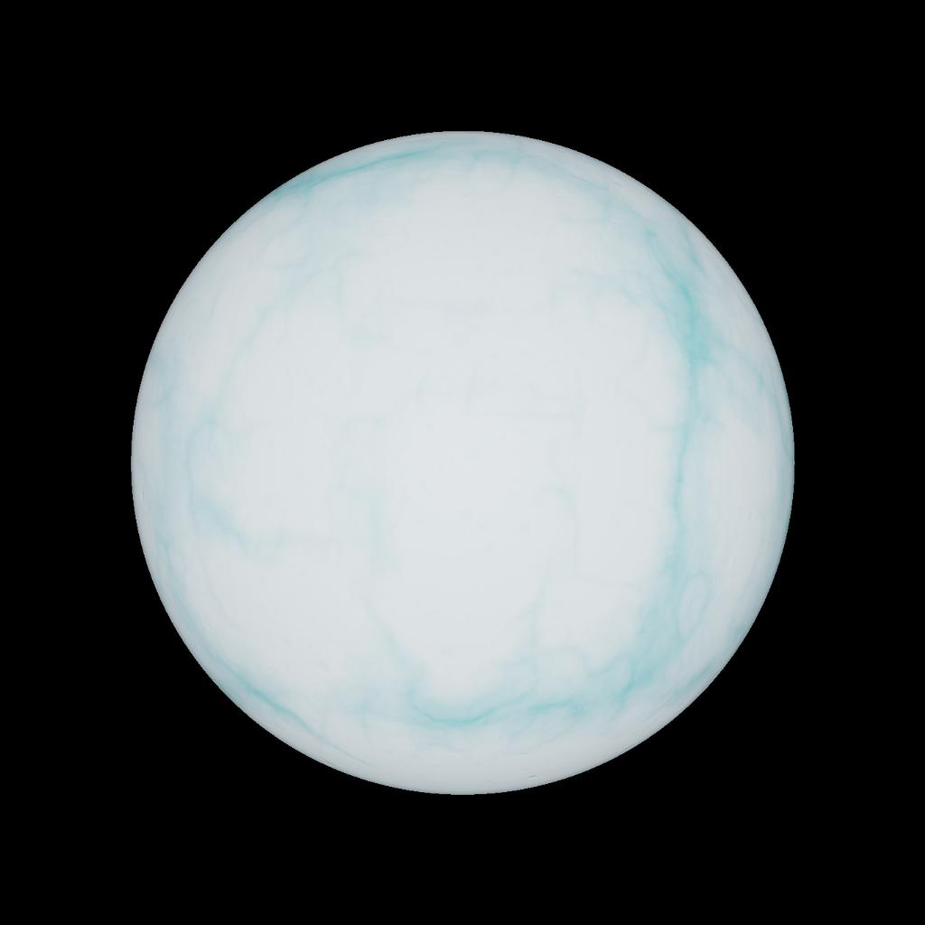A cold solid celestial body covered in partially cracked ice and many crater impacts.