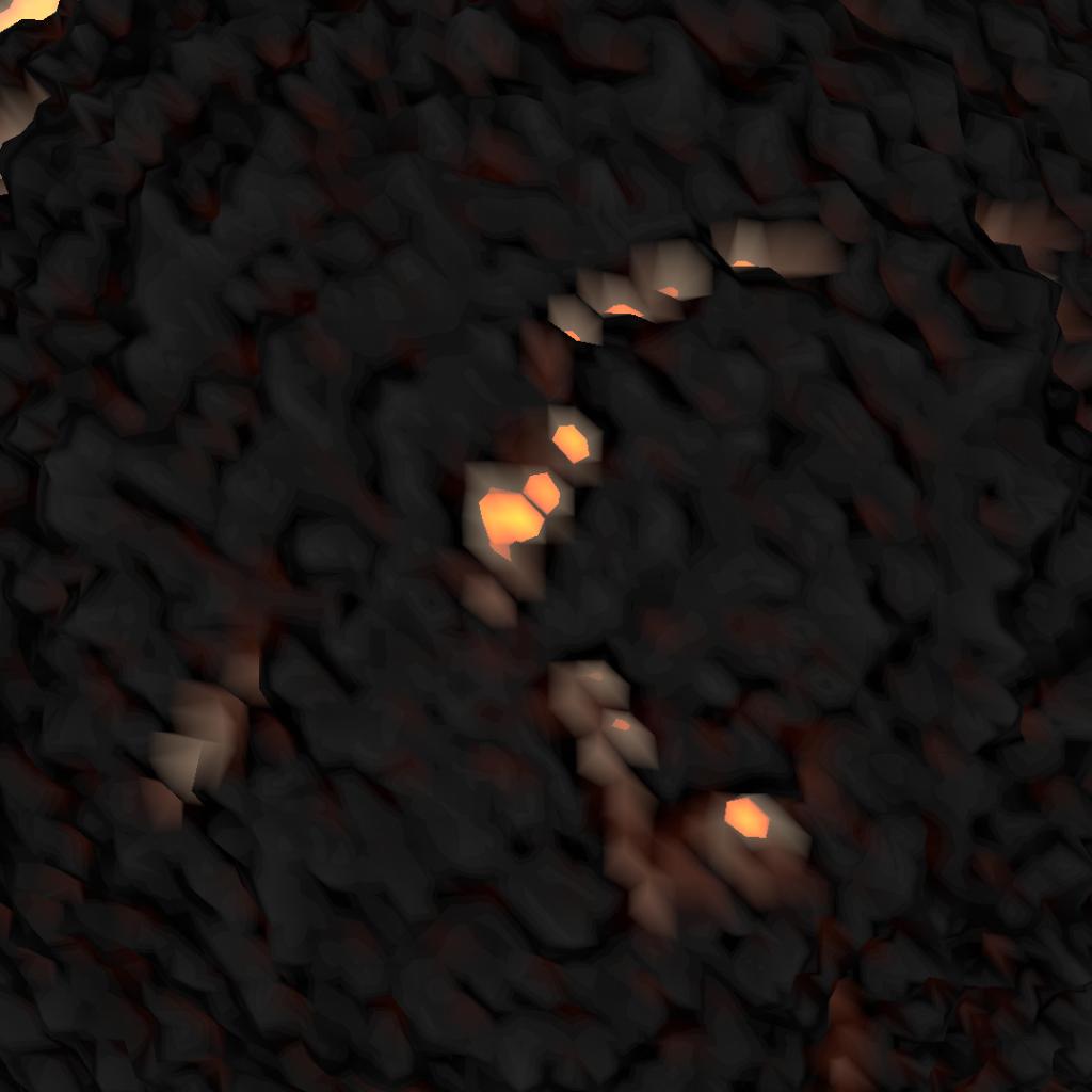 A rocky celestial body covered in cracks containing rivers of lava with a very irregular crust.