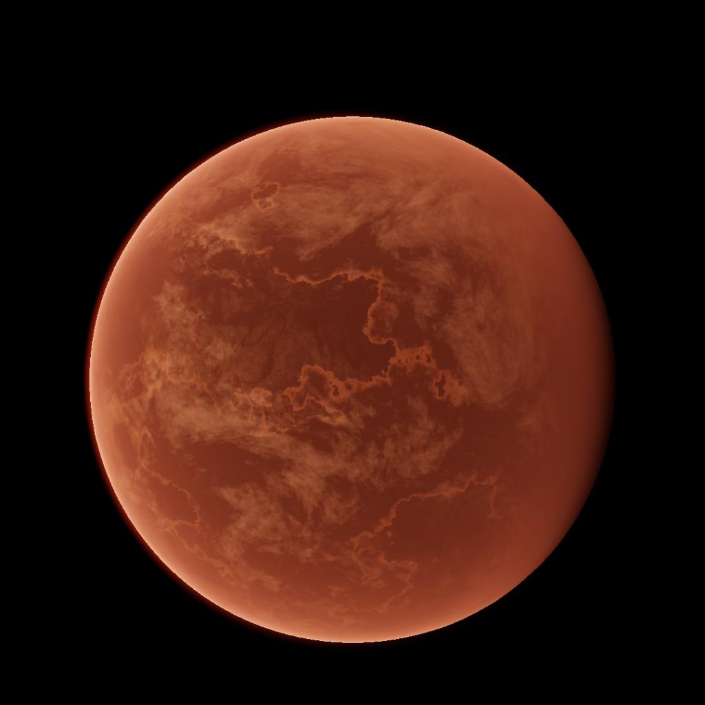 its surface is a tectonic graveyard. long ago, Rhein used to have liquid oceans an active core. it had continents and tectonic plates. but as time passed, the temperatures rose, and the planet slowly boiled every last shred of life off of its surface. now it remains as a dead husk of its former self, dominated by its neon-orange atmosphere and its charred terrain.