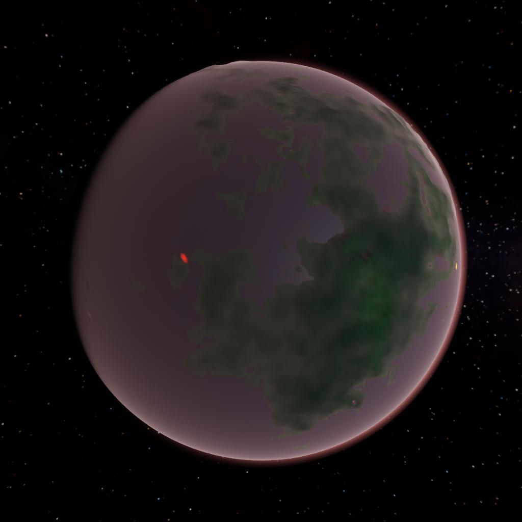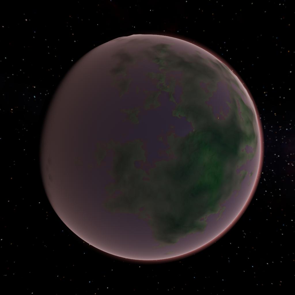 A rocky moon with surface water and life. Due to geothermal activity and the tidal forces from Tydos, the water stays liquid. There is a thick pink atmosphere that is mainly composed of nitrogen. It has many continental islands that were created by volcanic eruptions. Due to the view and the hospitable atmosphere, this moon is one of the most popular tourist destinations in the Juno System. As a result, the droods built a base here.