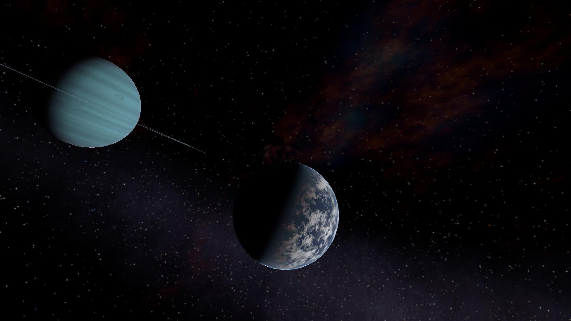 A super habitable terrestrial moon with vast oceans, very diverse biomes and a dense atmosphere, covered in what seems to be vegetation. This moon has conditions very similar to those found on Droo. The size and gravity are the same, days are only slightly longer by about an hour or more and the moon has a breathable atmosphere for Droods meaning It's the perfect colony location. Thanks to its stable orbit at the right distance from Teros, avoiding the inner radiation belts, excessive tidal heating or too little heating, It has perfect conditions to support life.