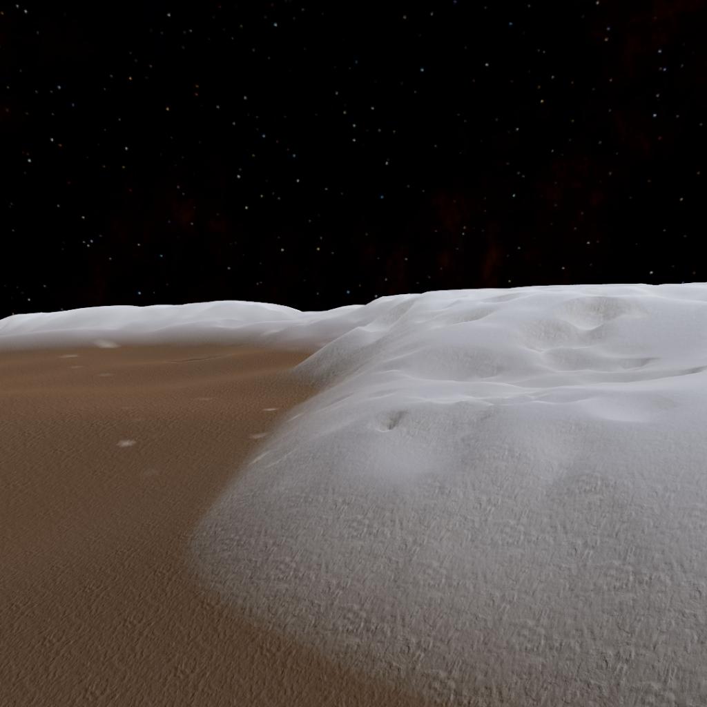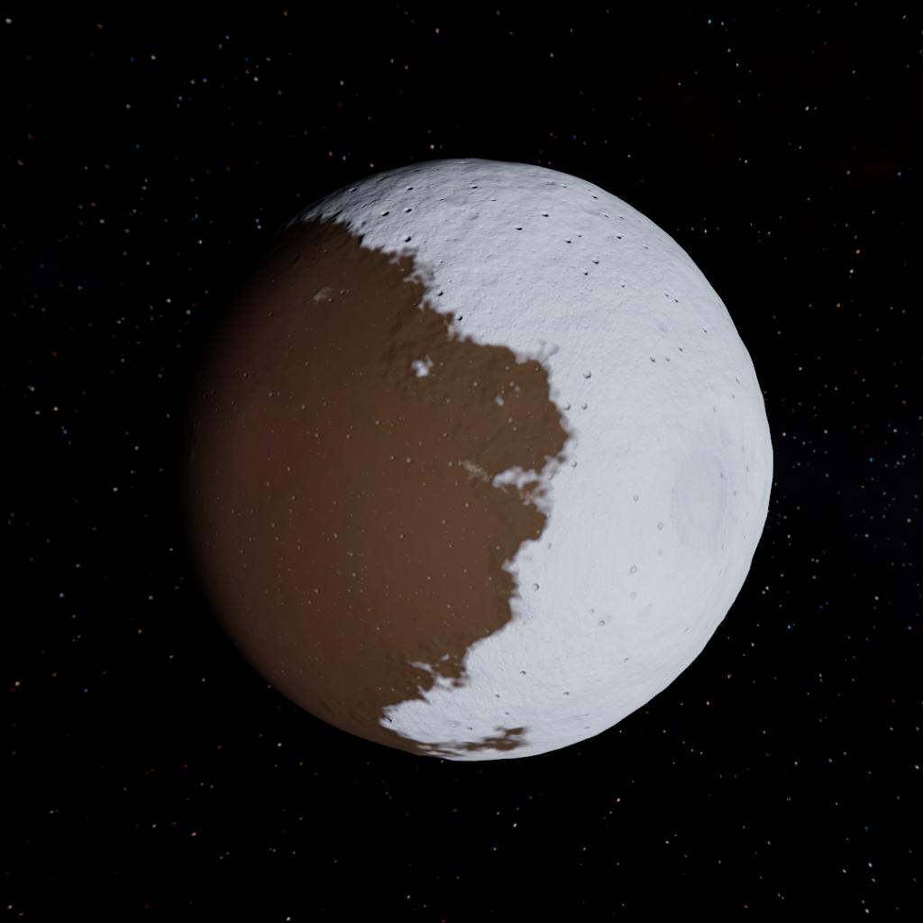 A rocky moon with many craters. It has a light side and a dark side. It is very similar to the nearby Dintanir.