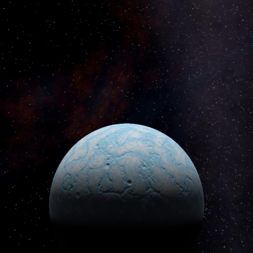 4347 H-E is the last moon of Ringalion. This moon has a thick layer or ice on its crust, which has begun cracking over thousands of years, revealing a liquid sub-surface ocean.