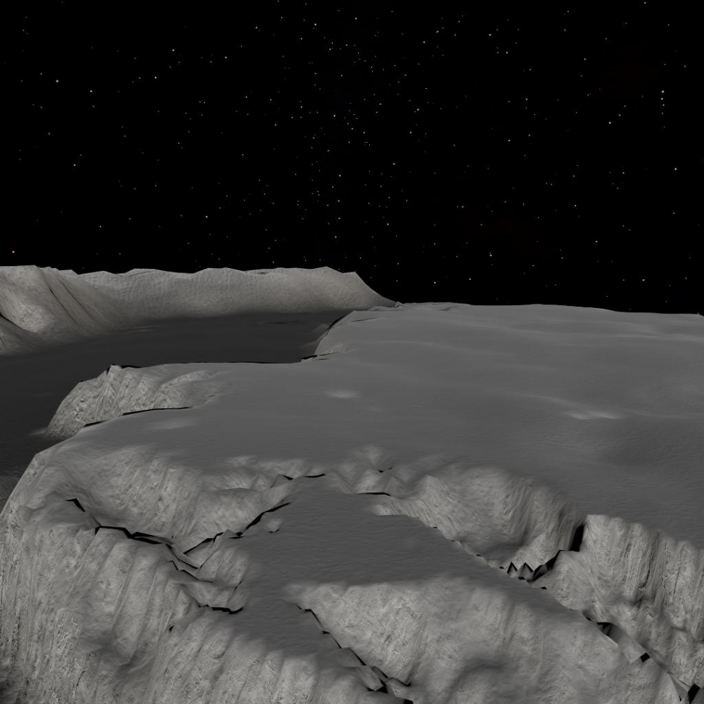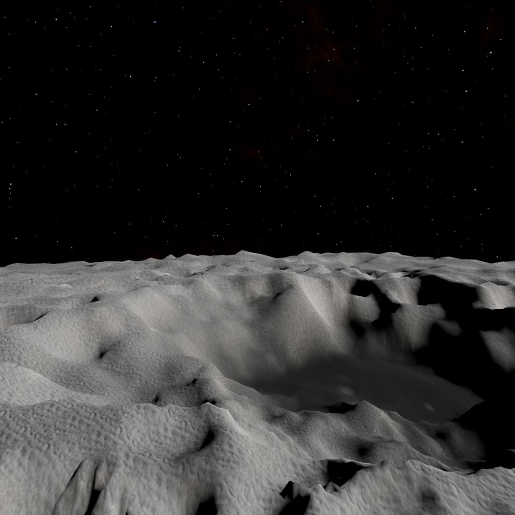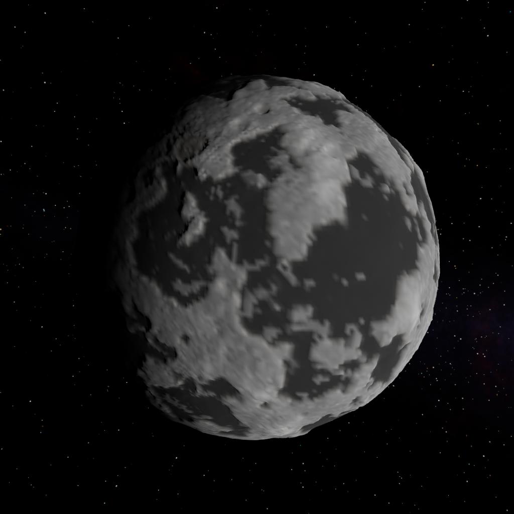 A small moon of a moon with mares and craters. It orbits Coldine in a eccentric orbit. However, due to tungsten in its core, the density is really high, leading to a surface gravity of 3m/s. It has spiky terrain in the crater fields, so I recommend you to land in the mares.