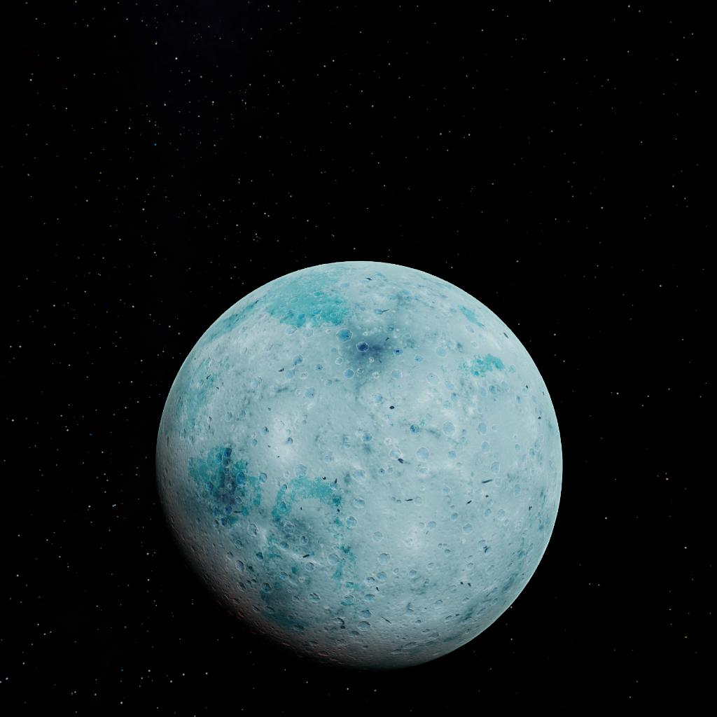 An icy celestial body, the second moon of Nirethyon, being the second moon to it's parent, its ice has thinned, and the top layer has been observed to be only 5km thick, leading to the formation of deep blue "Portals" into its subsurface ocean. The creation of the crevices has lead to the increase in the moons atmospheric density. It appears to lack any form of geothermal or volcanic activity except for a few spots, such as one known as Gonatu crater, where the Inquiry 3 rover was sent, with a theorised undersea volcano due to the observed high temperature area of blue ice, indicating melting. The surface is littered with craters due to its proximity to Nirethyon's B ring, and the impacts have caused the creation of the sparse C ring