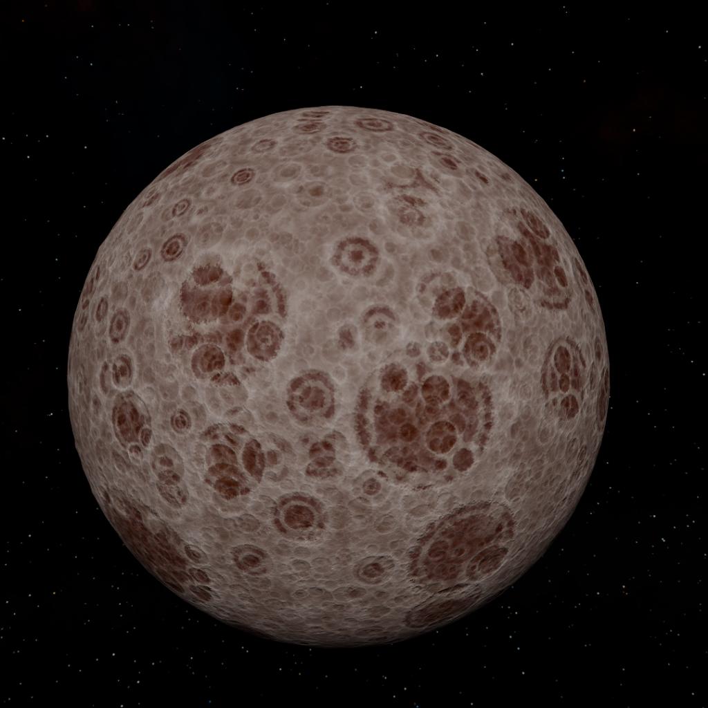 A medium sized rocky moon of gray and iron red hues.It's surface is one of the most scarred and ancient in the entire Aion system.