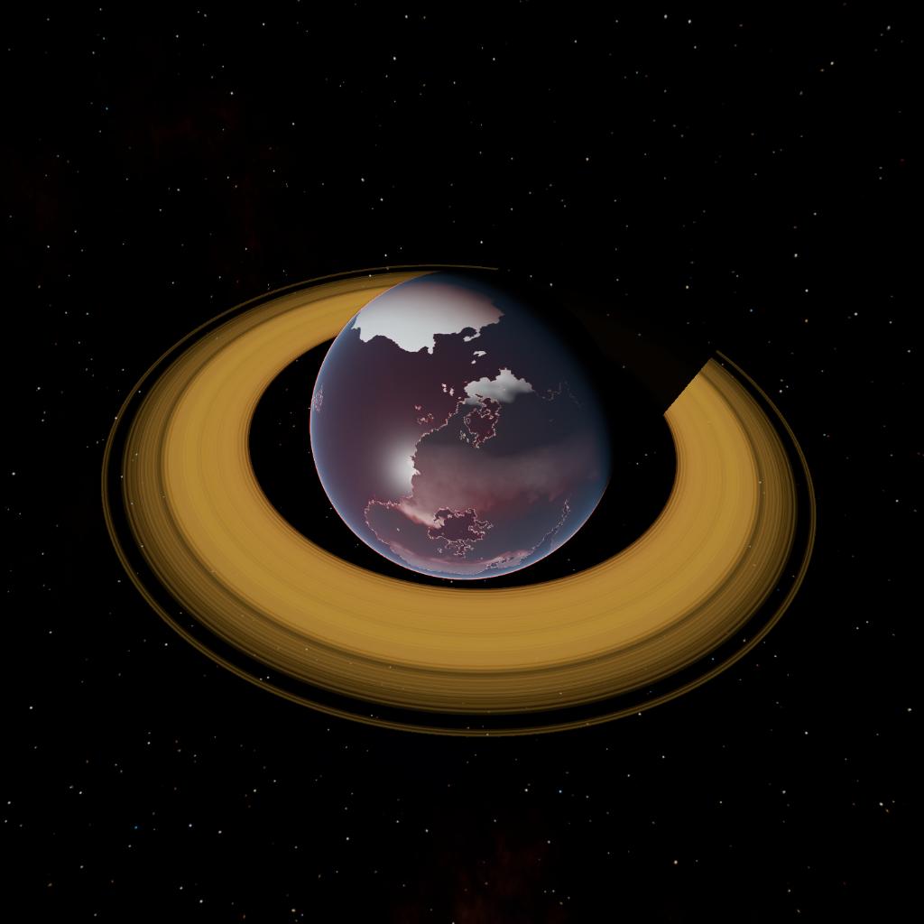 Perhaps a cataclysmic event involving a celestial object being destroyed by the planet? It could explain the rings and the red color, though there is a lack of craters, which would mostly and with high certainty be formed should any of the material rain down on the planet below.