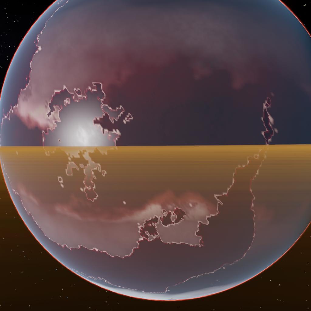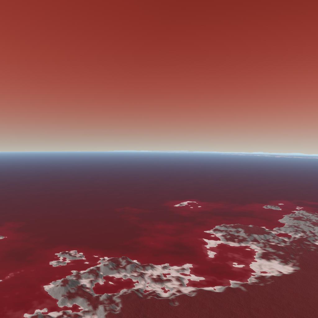 this planet was greenish-blue at some point in the past, but a couple of months ago it turned crimson red, who knows what happened here?