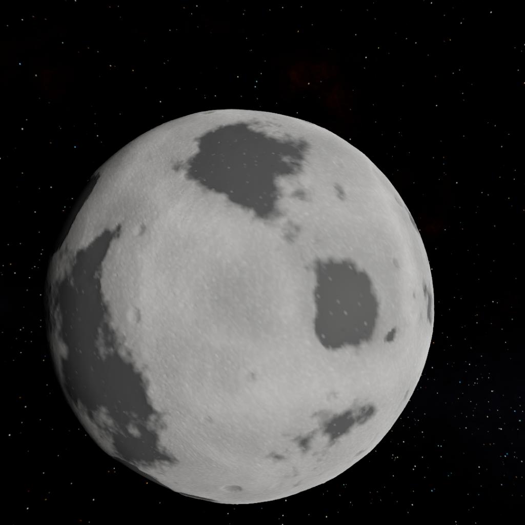 A rocky celestial body covered in fine regolith and craters, with some signs of volcanic activity.