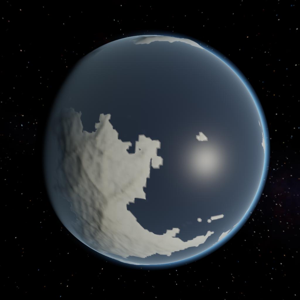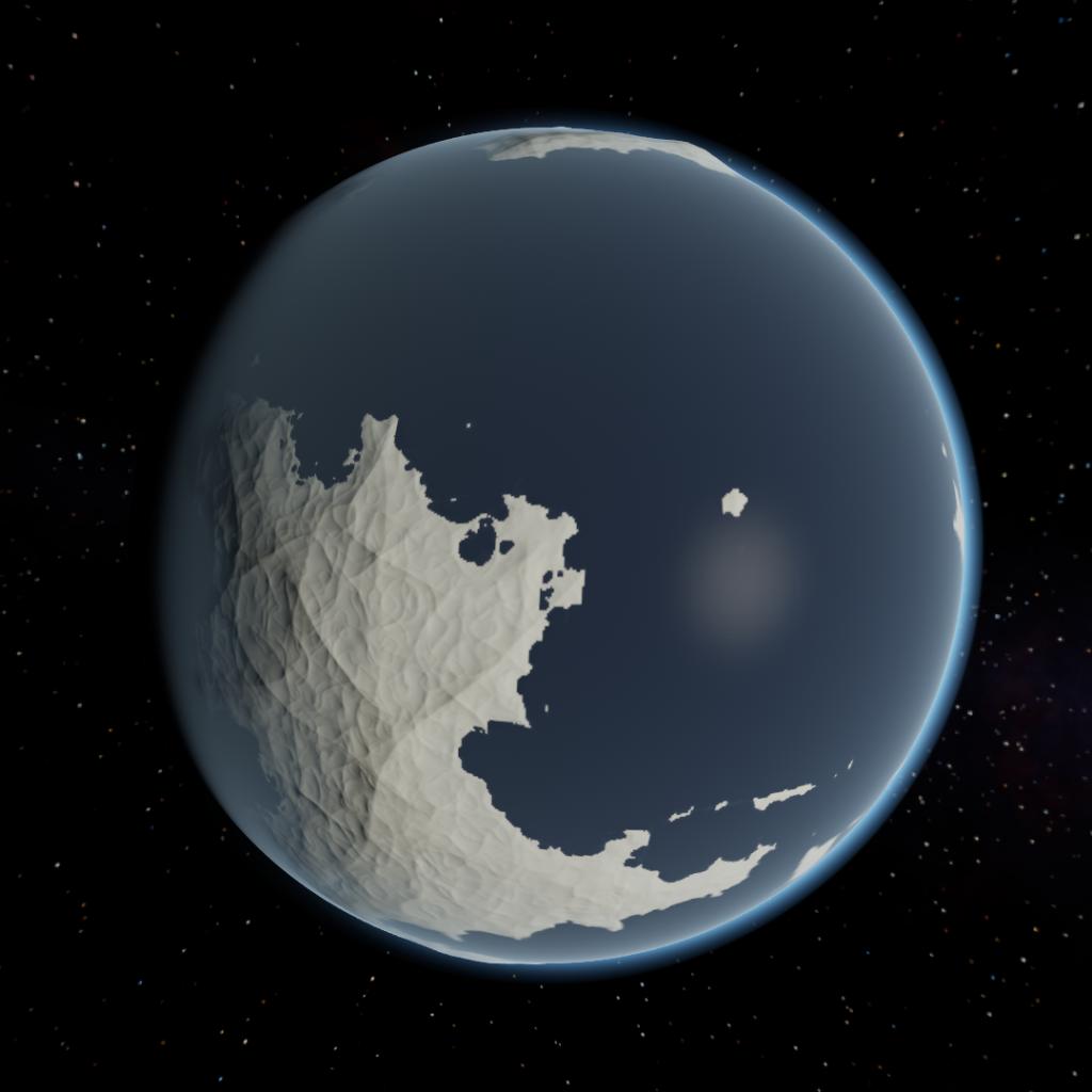 A large moon with water on its surface, and lots of snow aswell. It its extremely cold oceans, there is microbial life, and it is so cold due to it orbiting near the edge of Wiksna's SOI, meaning less tidal forces reach this moon than the other moons. There is a small base near the massive ocean.