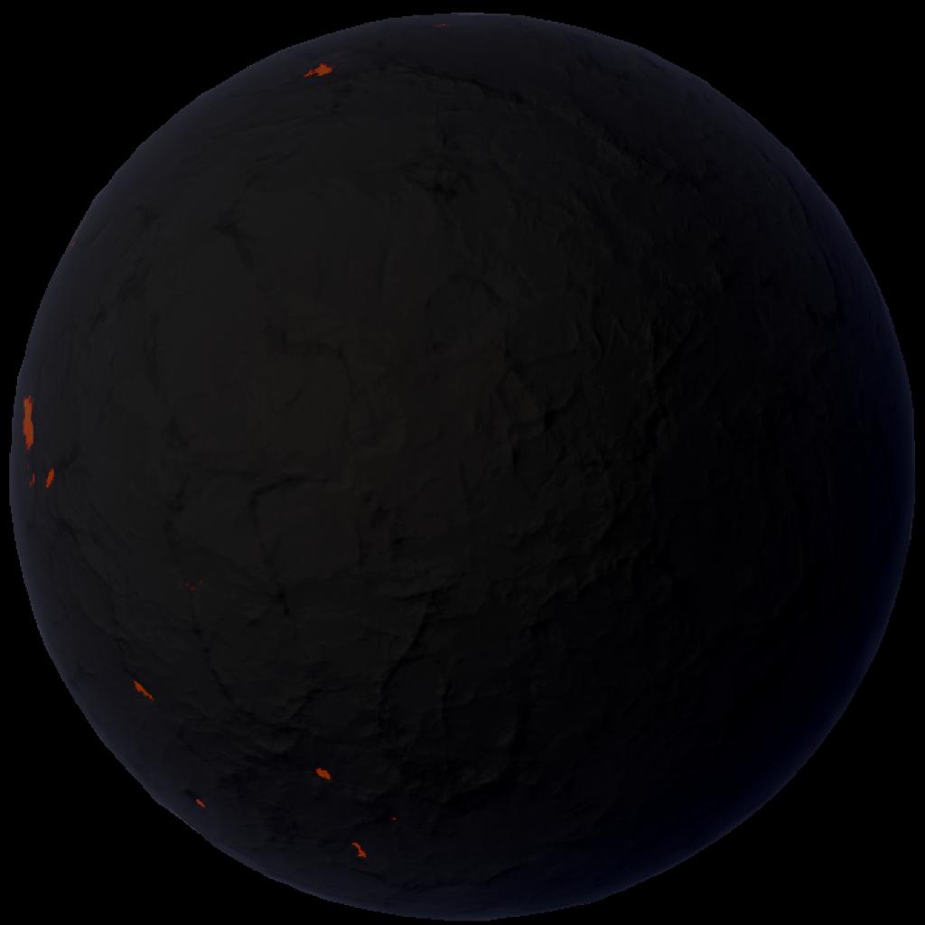 Alastor is the only moon of atrhal, its atmosphere its really thin, and its covered in lakes of magma.