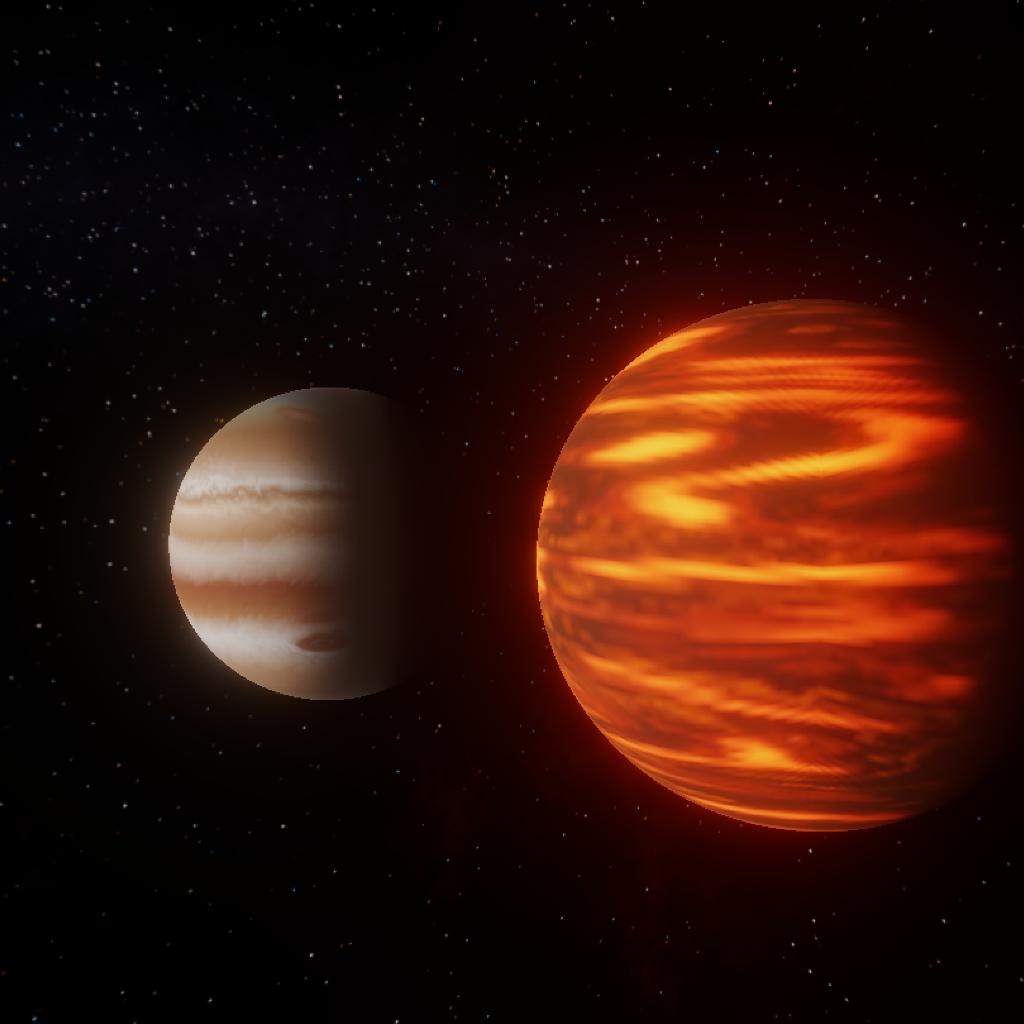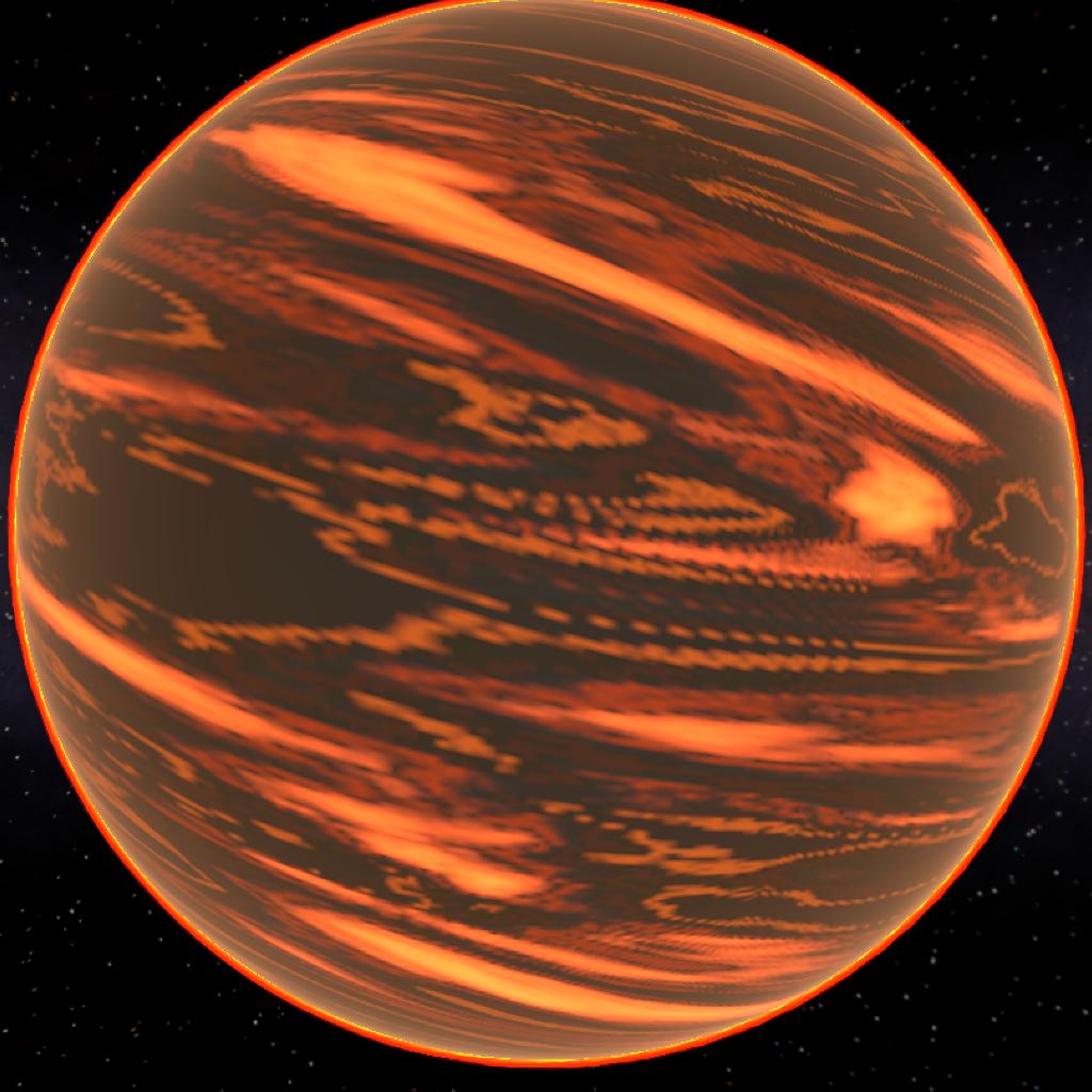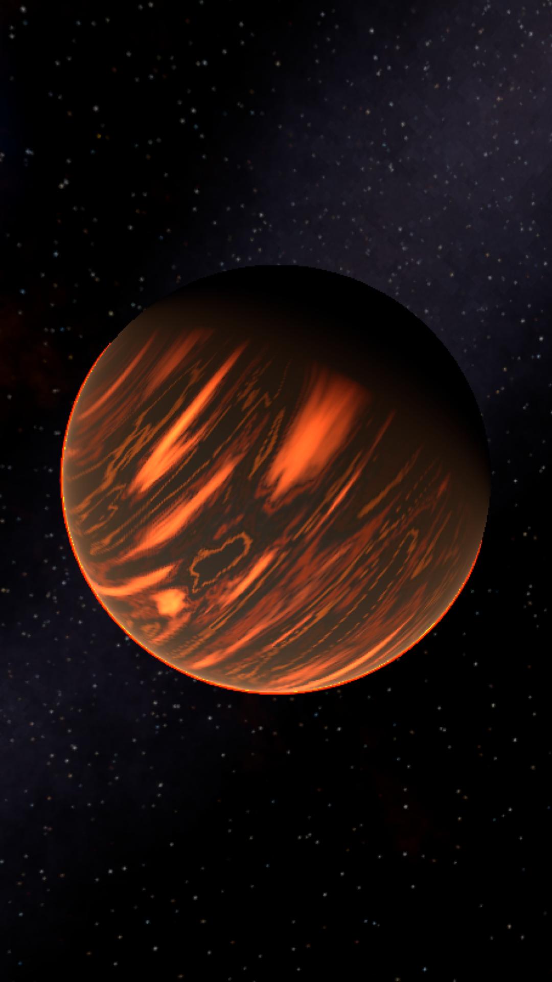 LORE NOTE: Aolis B Is a brown dwarf, or in poor words a failed star. In the core it has enough heat to initiate the nuclear fusion of deuterium, a heavy isotope of hydrogen, but not enough to fuse hydrogen like a real star. While the core temperature can be in the millions, the surface temperature averages at about 1300 degees kelvin. The planet is more than 16 times as massive as Tydos but Its size Is only that might bigger compared to Tydos for scientific principles that limit the max size a brown dwarf can reach due to multiple factors. The Aolis B brown dwarf orbits close to its star Aolis A.