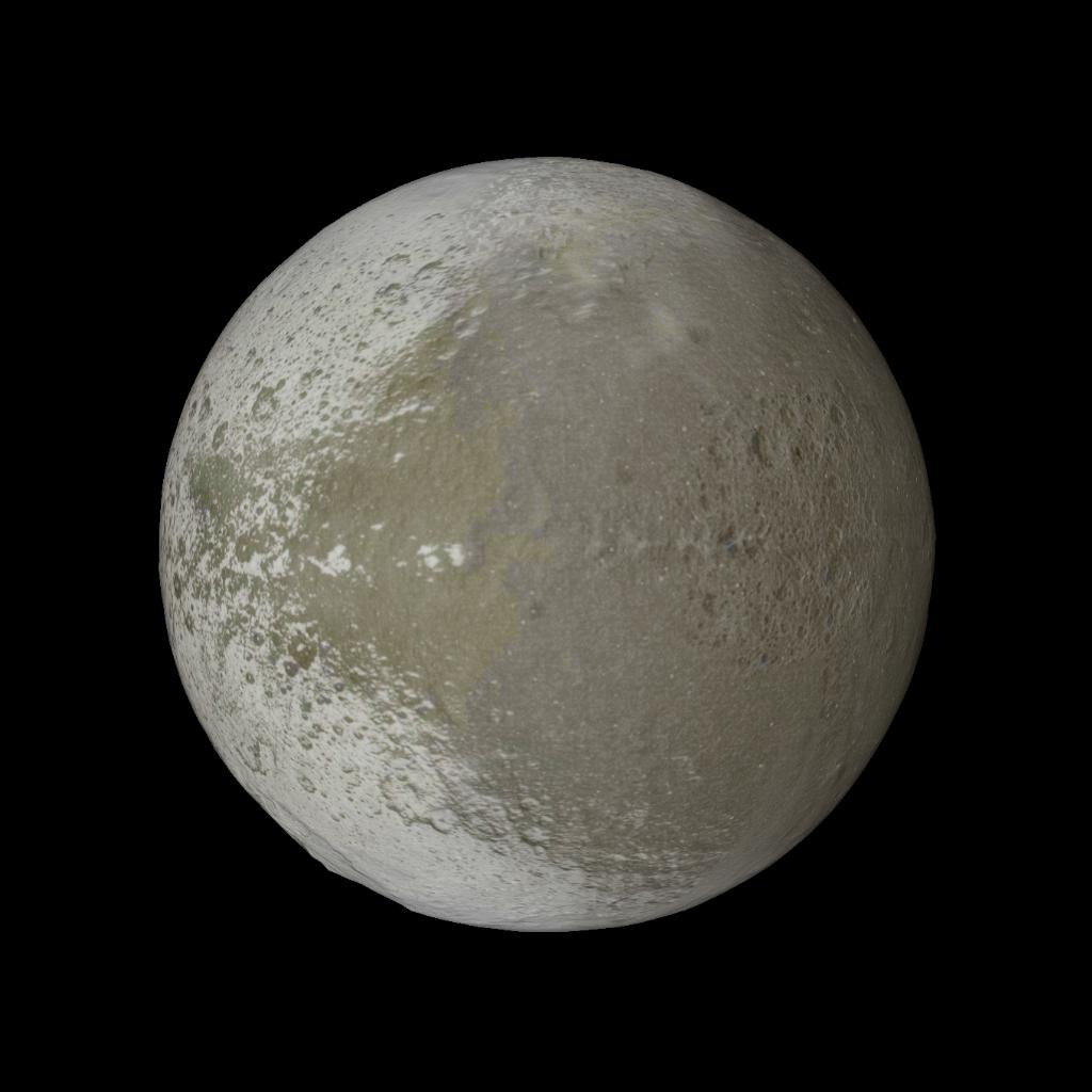 A rocky celestial body covered in fine regolith and craters, with some signs of volcanic activity.