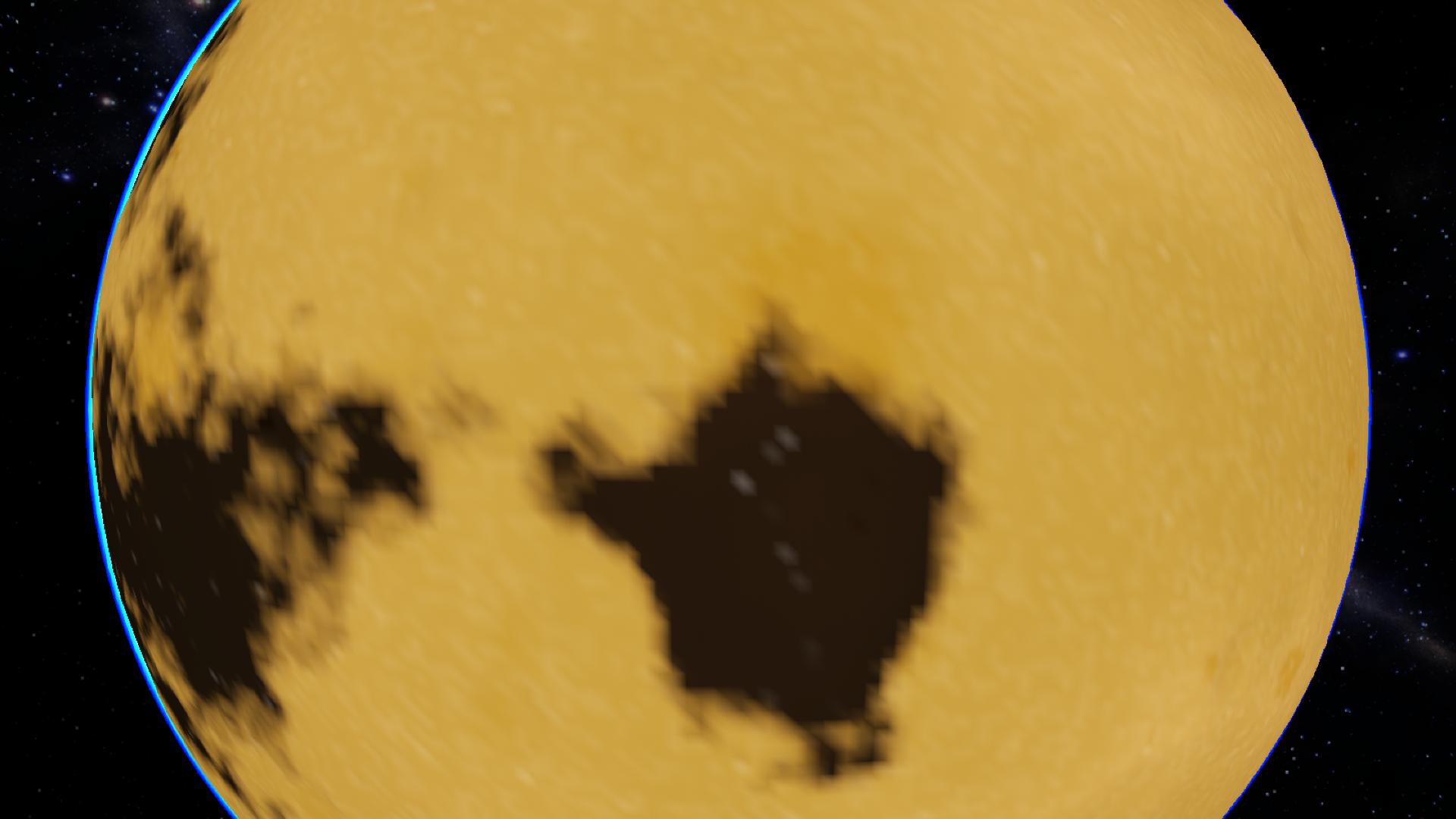 A rocky celestial body covered in fine regolith and craters, with some signs of volcanic activity. Jno accurrate Titan with 1/5th its actual scale