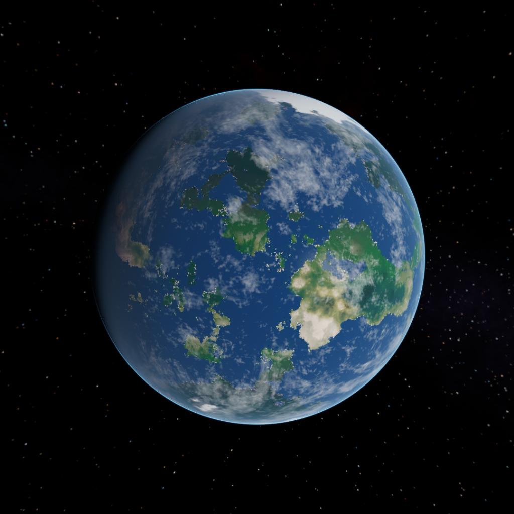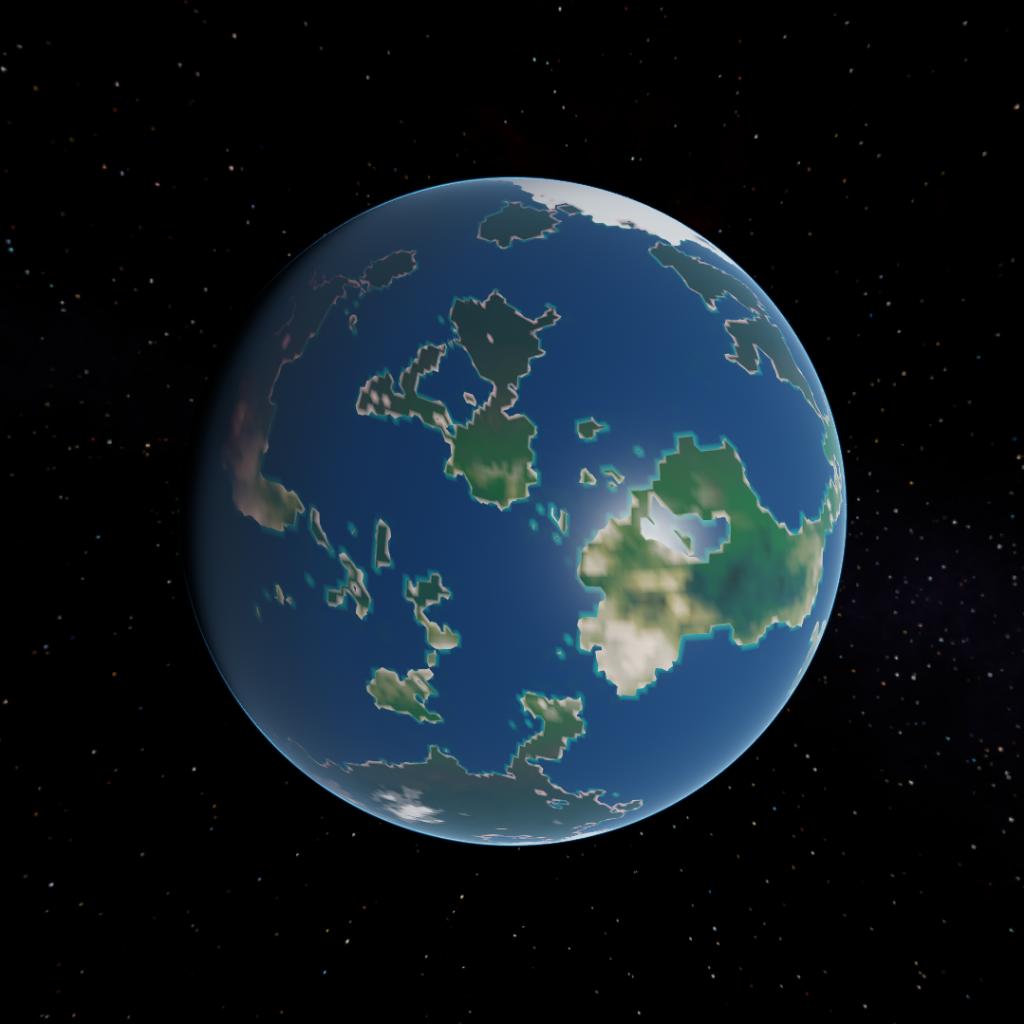 A superhabitable moon with life, despite being in the outer habitable zone. It has many continents, extremely diverse biomes, and most people call this moon the main base of the system, instead of Polmvz, even though it orbits closer to Dintona. It has a launch center, an airport, and 2 research bases built by the teminwesers. It has one moon.