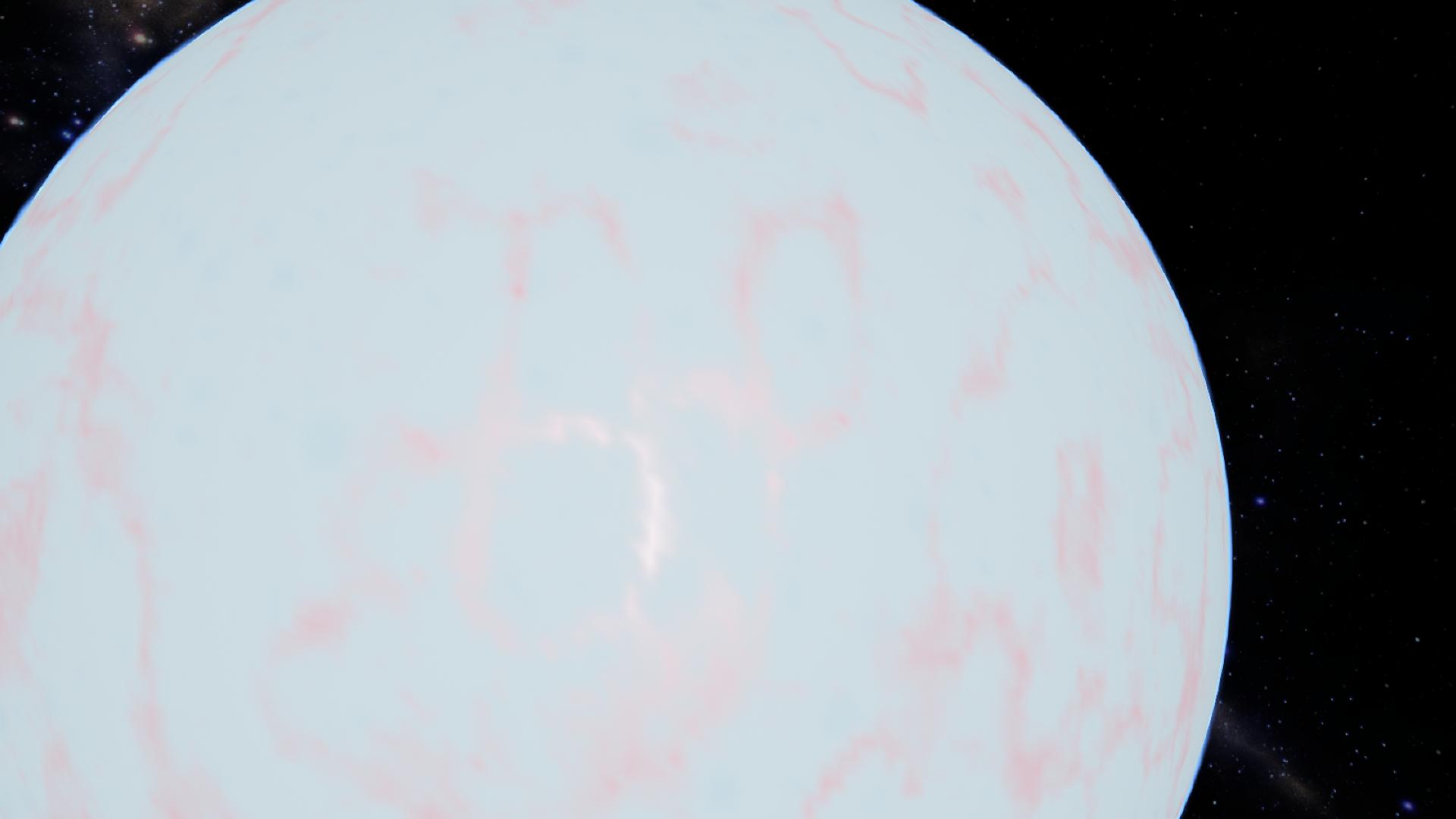 A cold solid celestial body covered in partially cracked ice and many crater impacts. Jno accurrate Europa with 1/5th its actual scale
