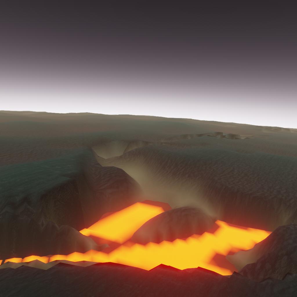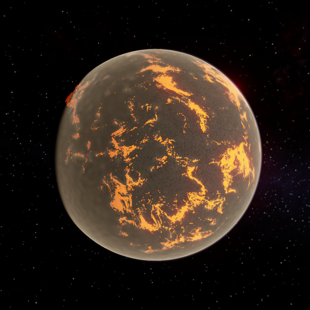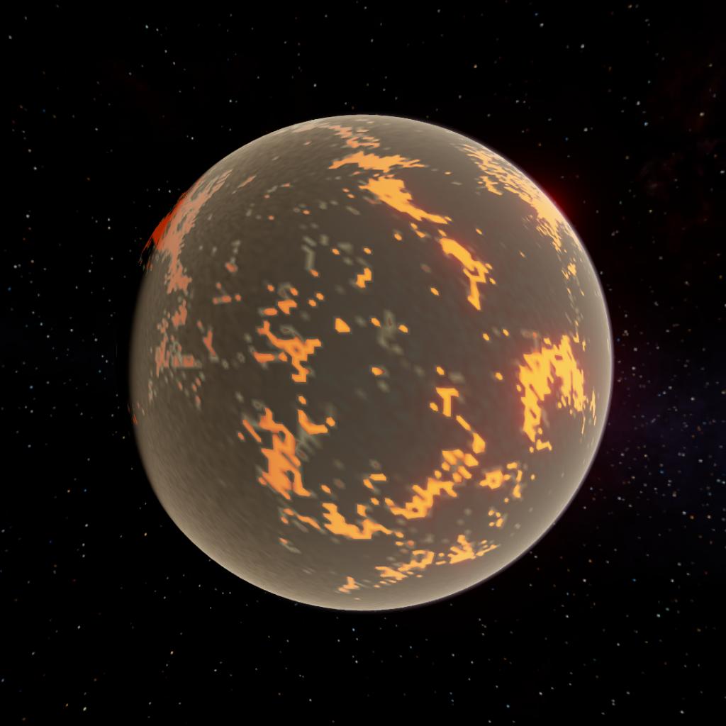 A large, hot planet with lakes of lava and a thick atmosphere. It has many hills and cliffs, and has one moon.