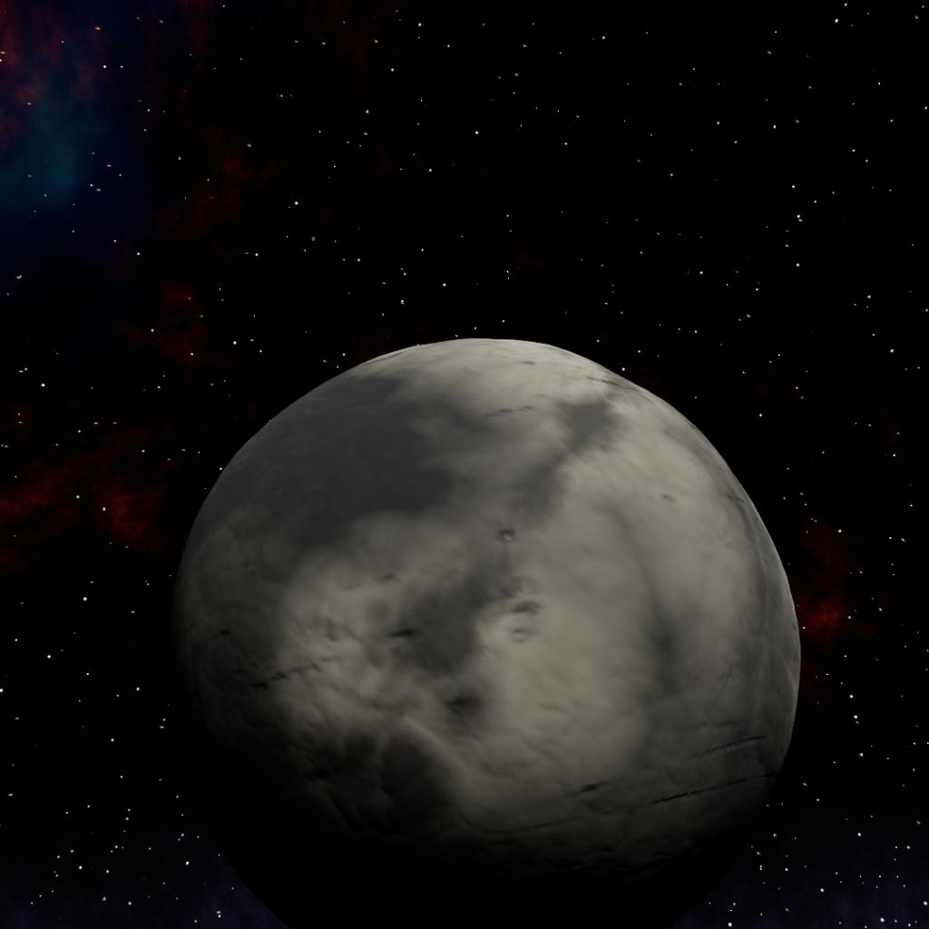 A rocky moon without an atmosphere. known to be full of mineable elements. like iron, magnesium, silicon, titanium,silver,tungsten,palladium. this is why Olio space industries have set up a mining colony near the equator. excess smoke from within underground mining and manufacturing has caused a thin atmosphere to form within the canyons.(said atmosphere so thin i didn't add it)