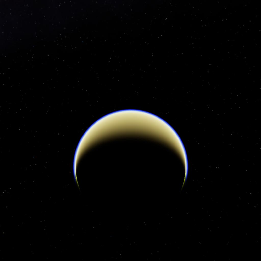 A big moon with an incredibly thick atmosphere and large methane oceans.