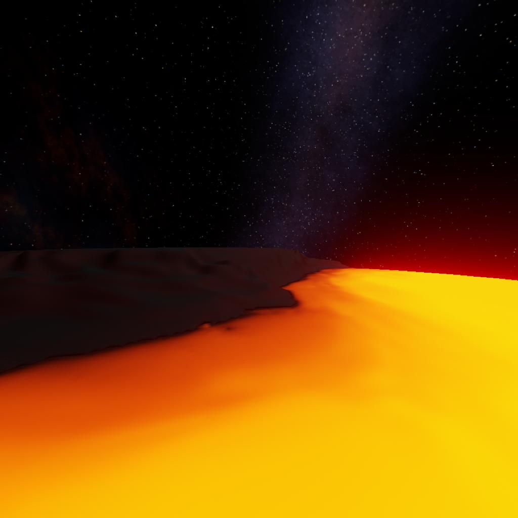 A rocky celestial body covered in cracks containing rivers of lava with a very irregular crust.