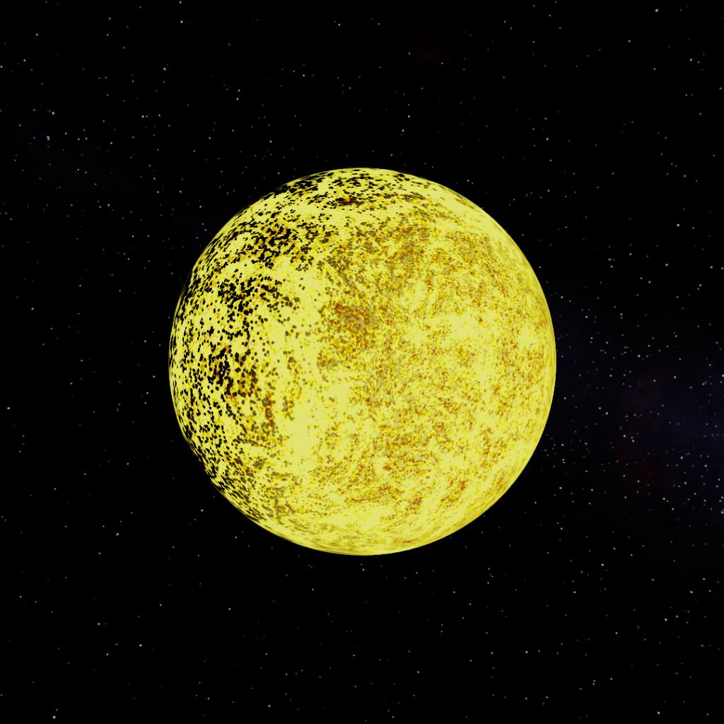 A decently sized planet with a very chaotic surface. In its crust, over 9000 tectonic plates, causing magma to constantly rise and bubble at the surface. Its lava is so bright that people near it have trouble telling which side is day and which side is night. It orbits close to Fentheran and has one moon.