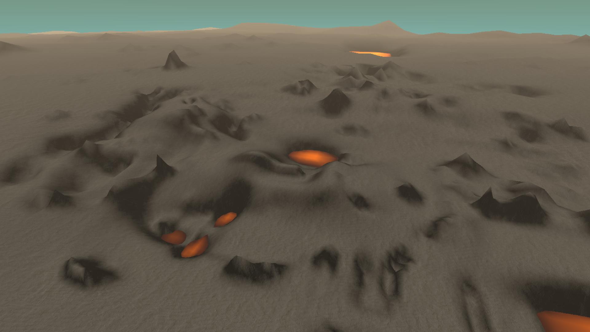 The second moon of Teros which comes with a very thick atmosphere and a surface with very extreme conditions. This world has become a toxic wasteland covered in active volcanoes, some lava lakes and plains of volcanic rocks with a few mountains. This world once likely similar too Drost has been destroyed by its high volcanic activity wich produced a lot of greenhouse gasses. The dark brown clouds obscured the sun while the upper layer of the atmosphere, which is kind of reflective, reflected away the incoming sunlight. This meant that the surface received way less sun than normal but It still got heated up by the many many volcanoes aswell as by the tidal heat of the Gas giant. This moon Is smaller than Drost but way more active geologically with earthquakes being a common occurrence and volcanic eruptions constantly happening.