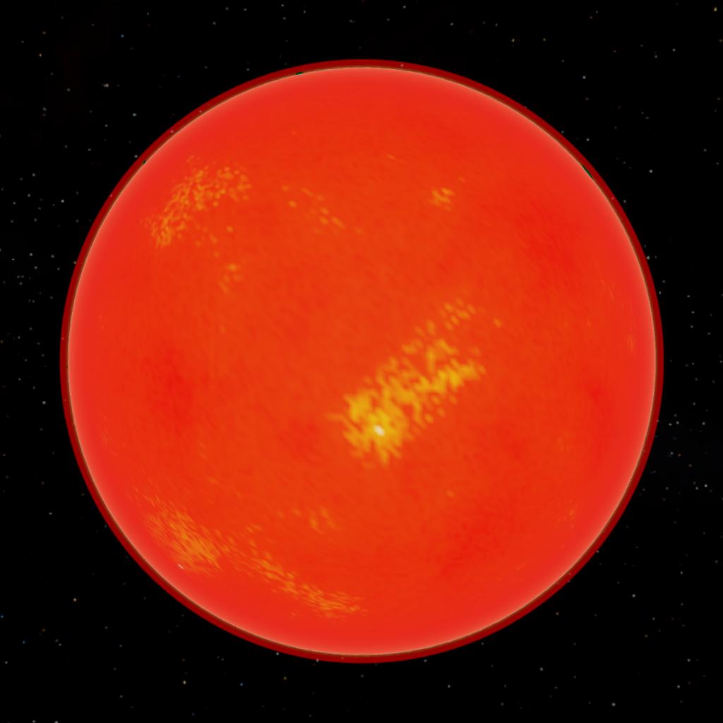 The largest known star, Over 1,700 times larger than our Sun, If placed in the center of our solar system, it would engulf the orbit of Jupiter, and nearly out to Saturn.