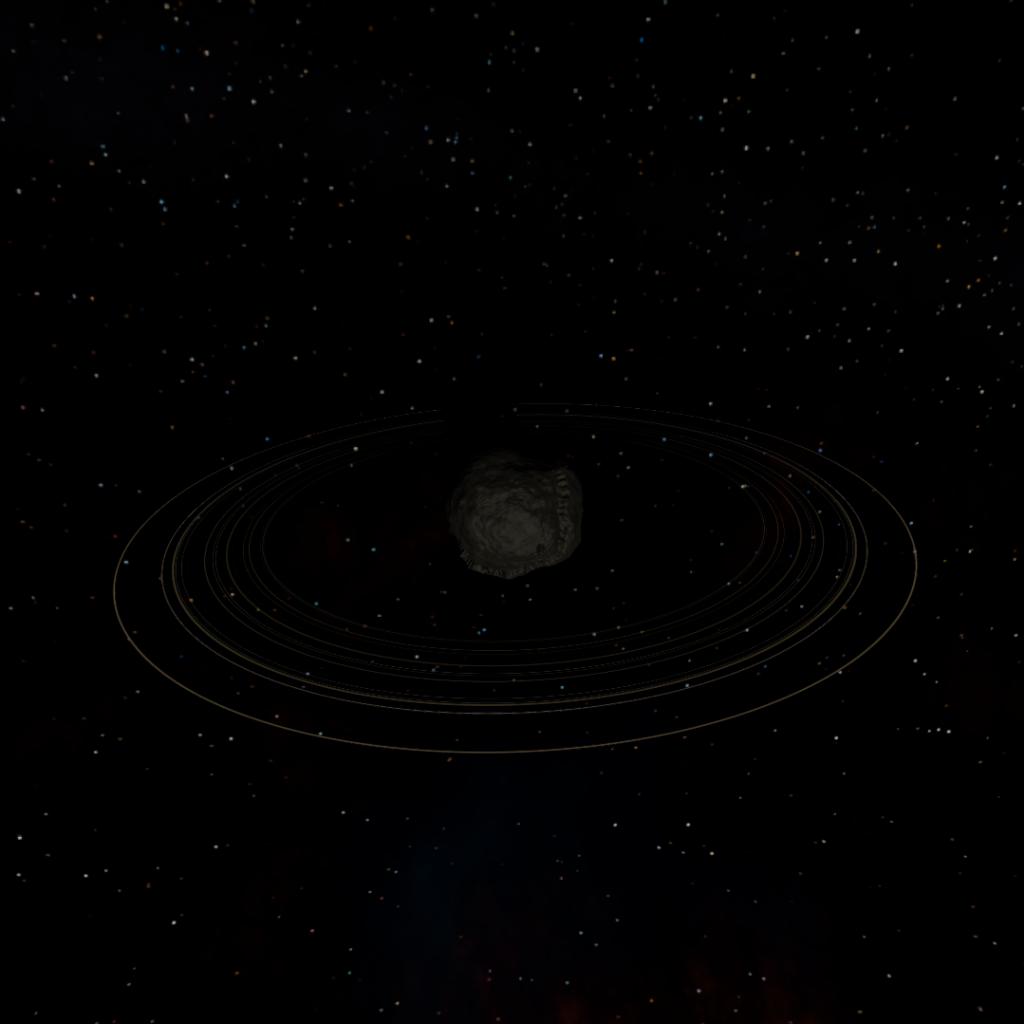 A mangled and cracked dwarf planet, a shell of what it once was. Made with blank template.