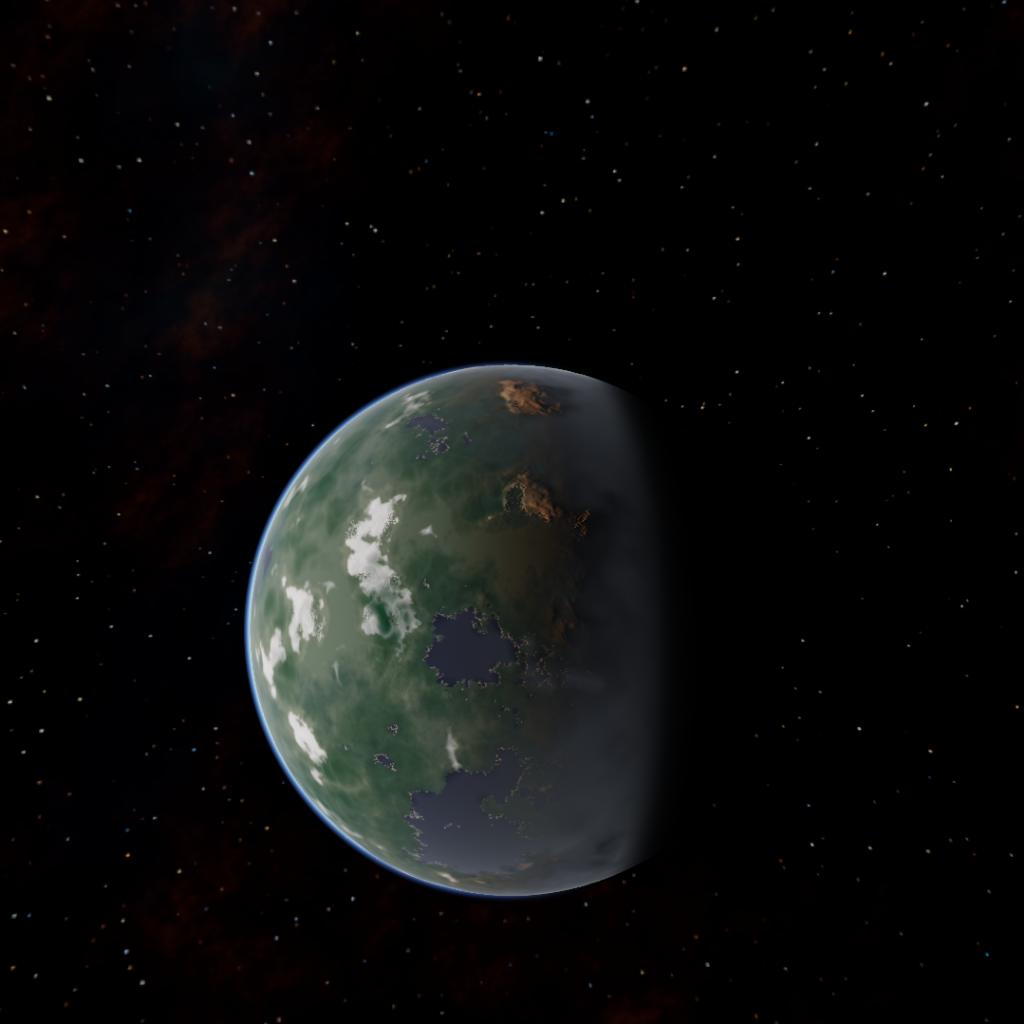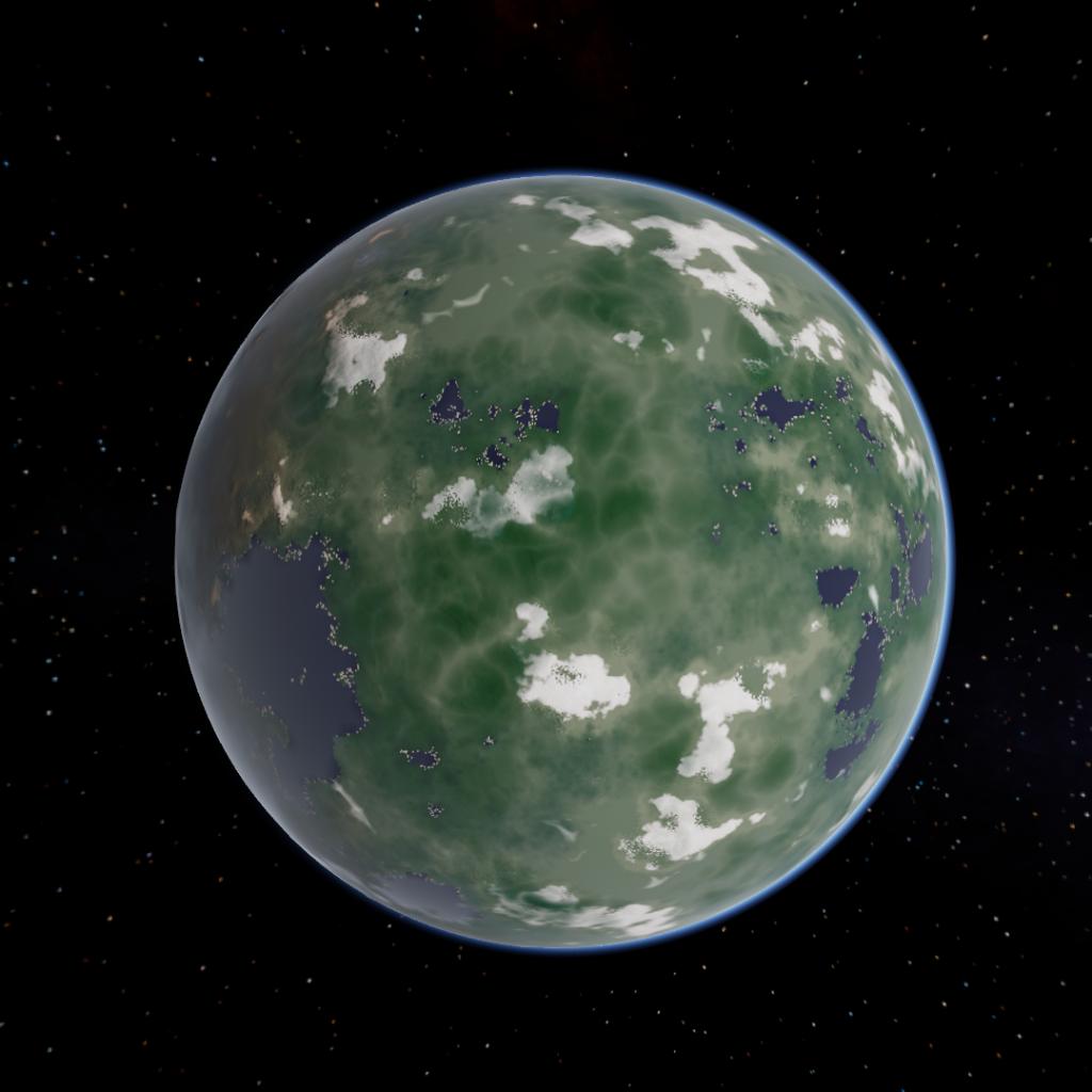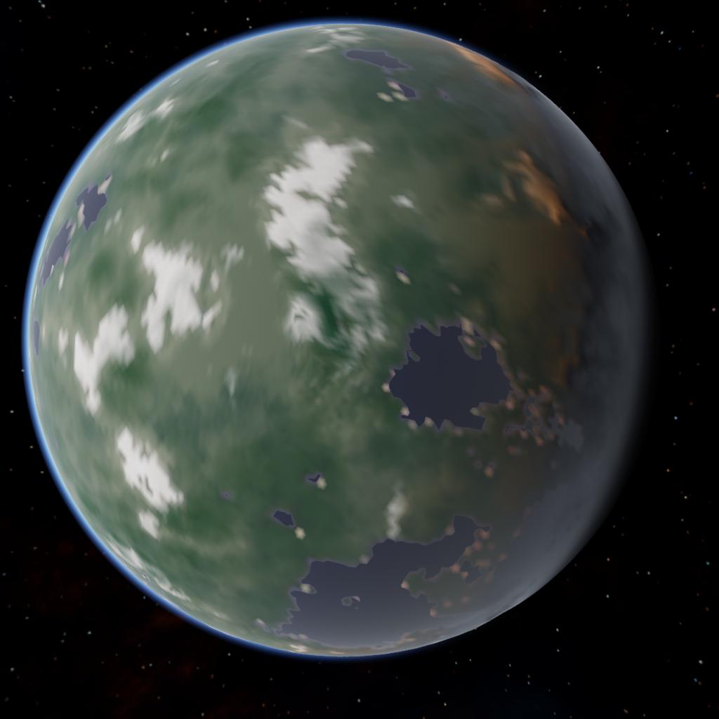 A terrestrial planet with an atmosphere and capable of supporting life. It orbits Rintares in the outer habitable zone. It has many strange mountainous spikes and craters. Most of the surface is either boreal forest or tundra. Mountain ranges are scattered all over this planet. There are 2 small bases and a drone ship here.