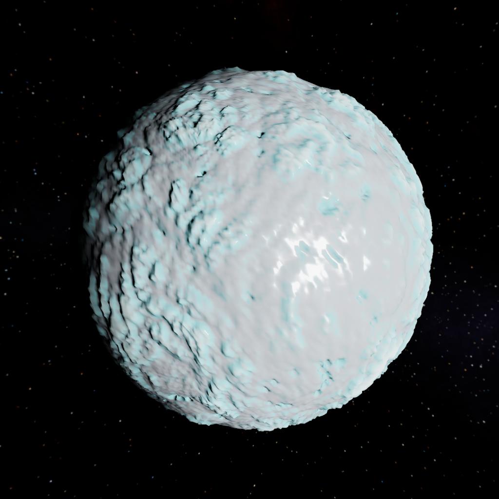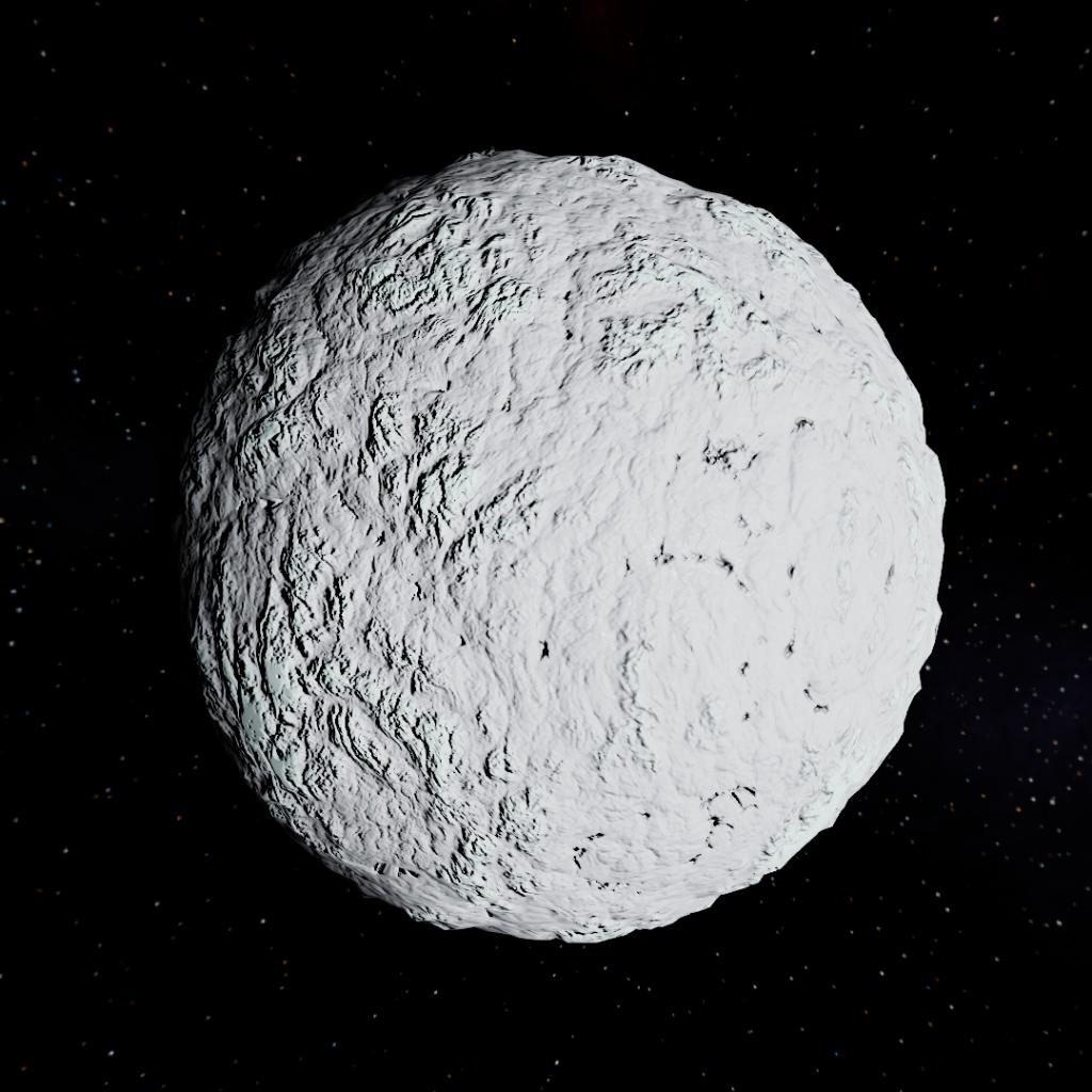 A small moon with insanely wild terrain. Ravines and mountains and craters are all over the place, and plus the low gravity, landing here is said to be almost impossible. It orbits Urados in an eliptical orbit.