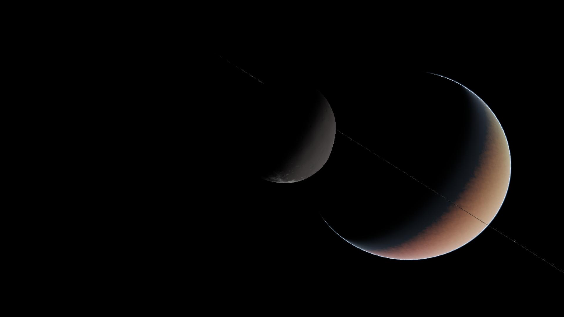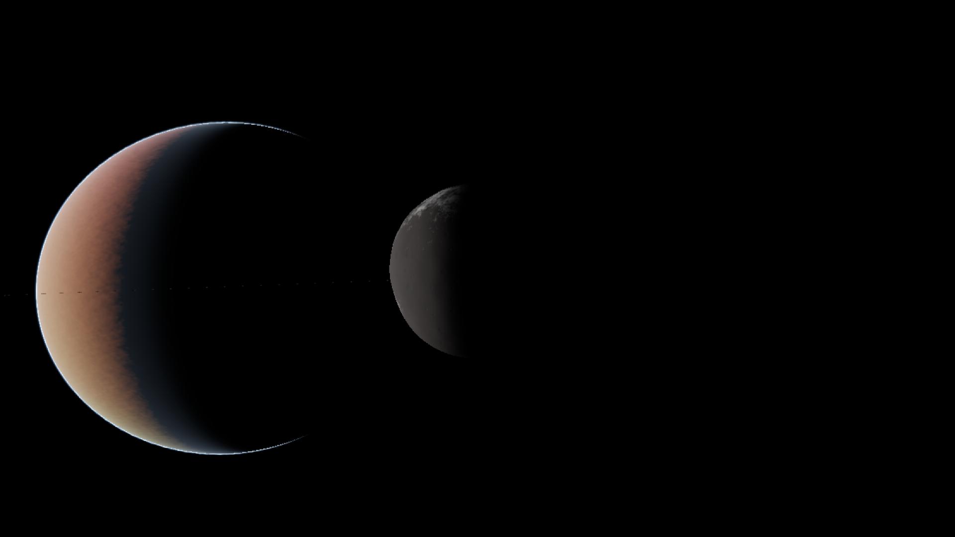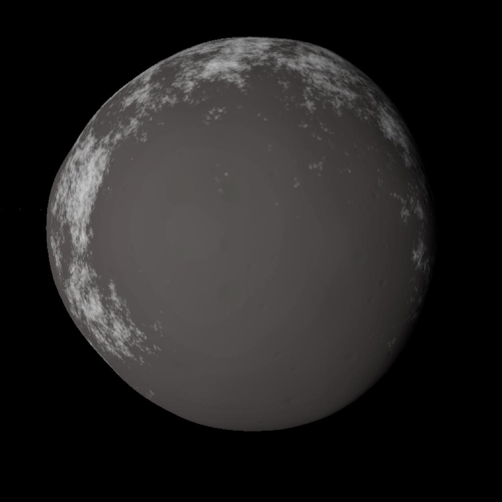 A moon of Wesington that is almost spherical. It also has an extremely fast rotation, and has a large amount of the surface covered in white rock, and another amount in grey rock.