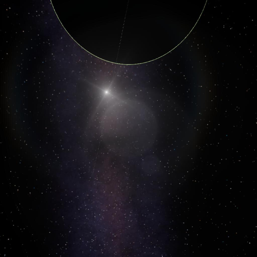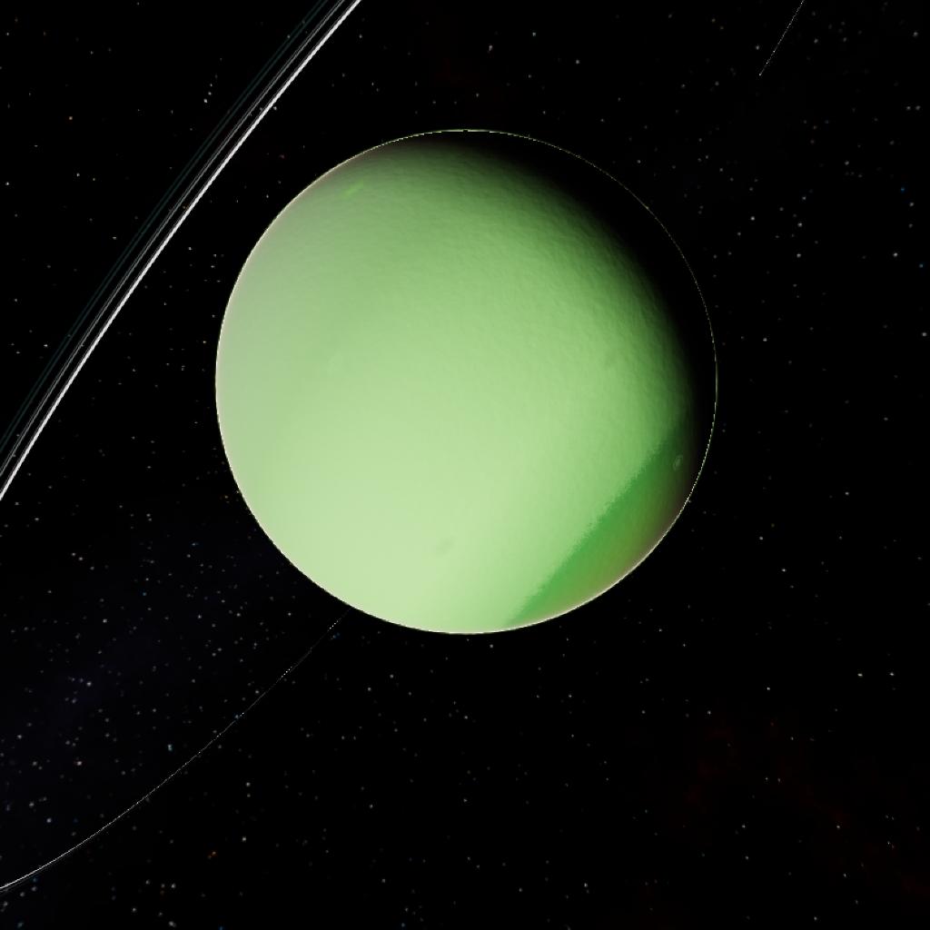 A large gas giant with 3 possible moons orbiting it. Its the 4 largest planet in 'this' system. The bands are weird with the green blending in but one band doesn't. Storms are scatter everywhere on its surface