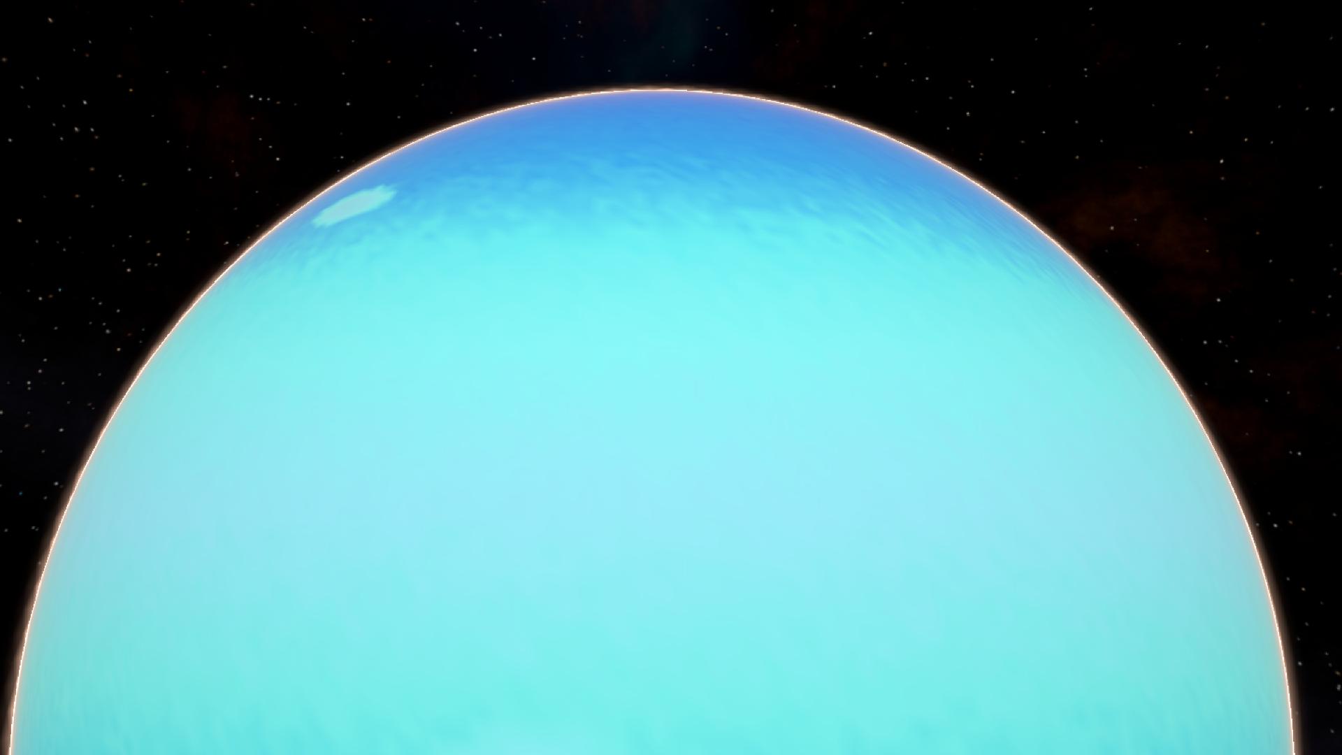 A ringless gas giant with a very chaotic top layer of clouds enormous storms. It has 3 moons.