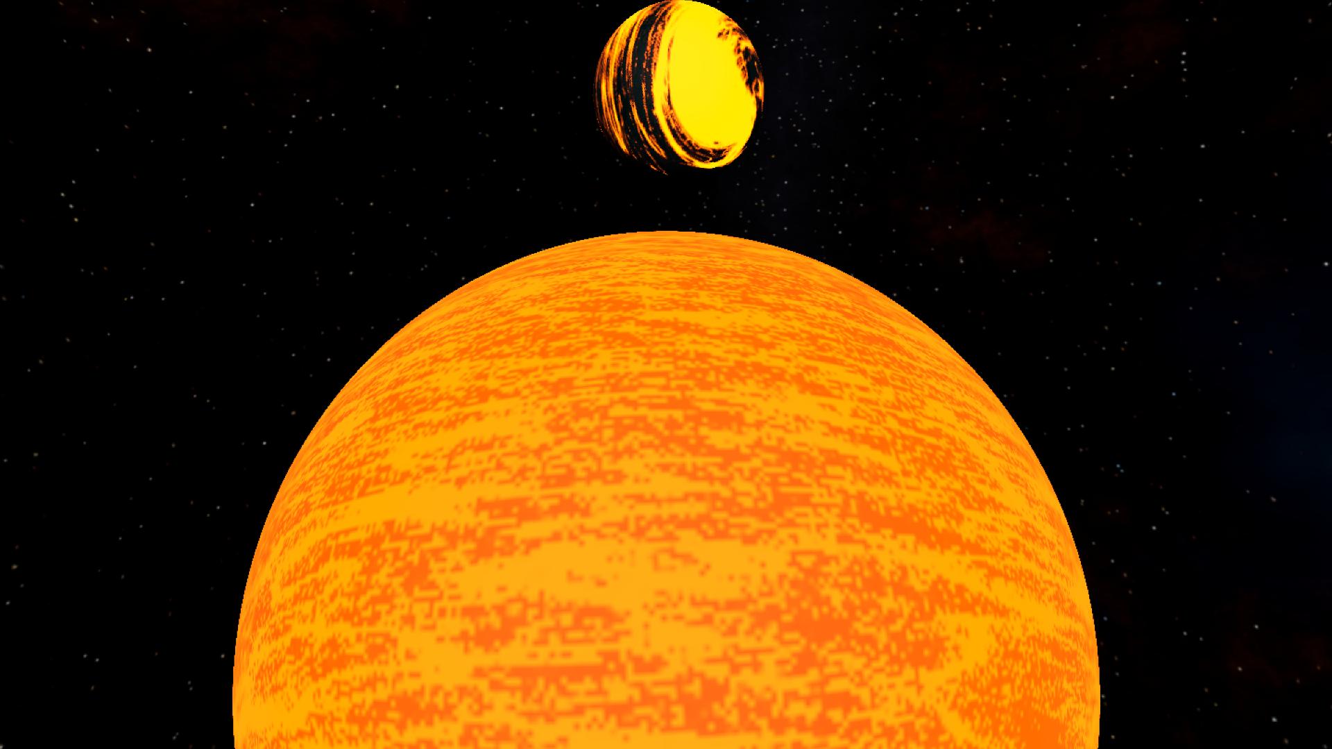Firoa is the moon of Gefiros. It Is close to its roche limit and is mostly composed by magma and molten rocks, the huge tydal forces cause It to deform slightly at times. The moon has a slow rotational period of 20 hours far exceeding that of Gefiros which is of Just 9hours.