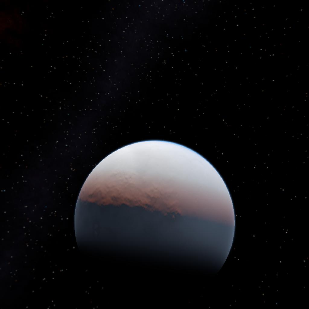 An icy moon orbiting the gas giant Oceanis. It has a breathable atmosphere and oceans of snow and ice. It's also covered in multiple crater impacts wich might be why It has so much frozen water on the surface. The temperatures are extreme for any life forms and can go as low as 200 degrees kelvin or around -73 degrees Celsius meaning the average temperature during the day Is like being in Antartica.