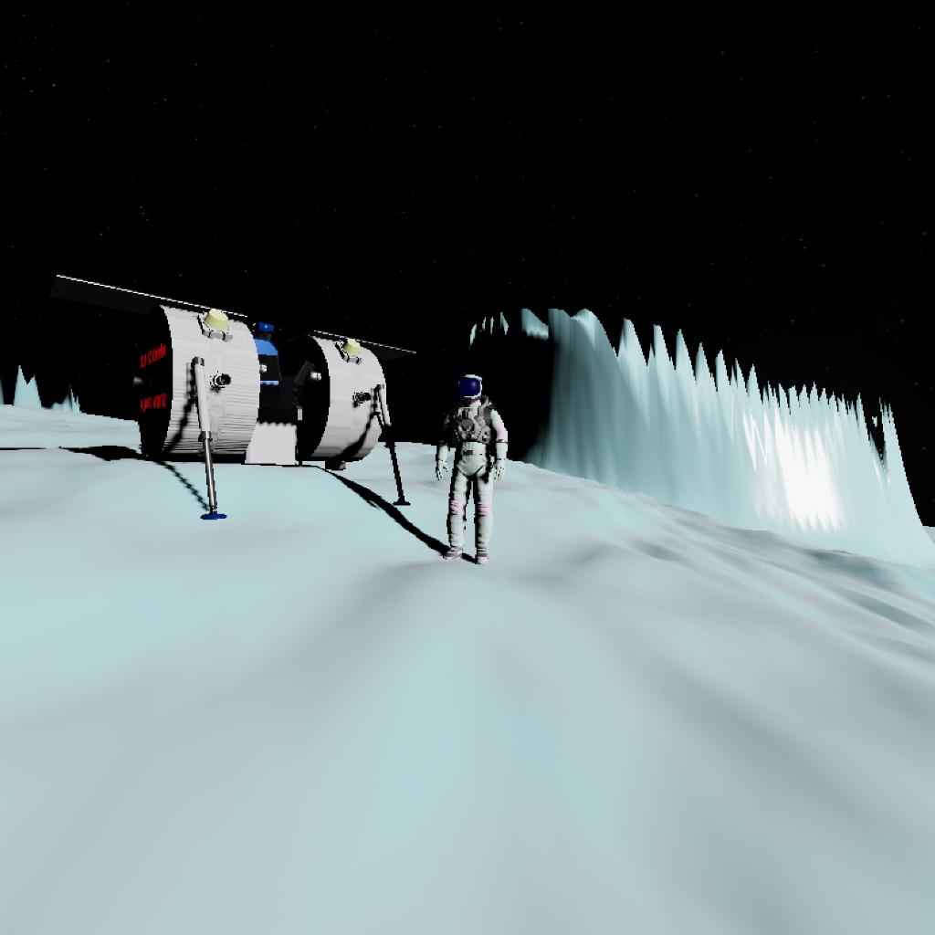 A cold solid celestial body covered in very cracked ice and many crater impacts and