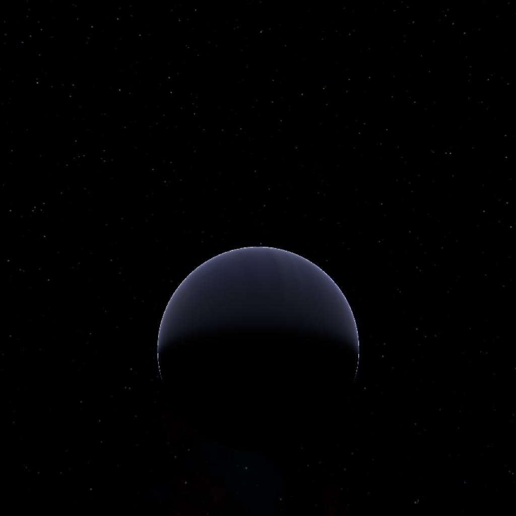A tilted, ringless gas giant with smooth bands and ejected to even futher from Illelux.