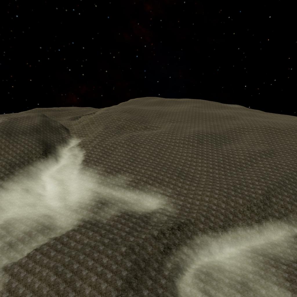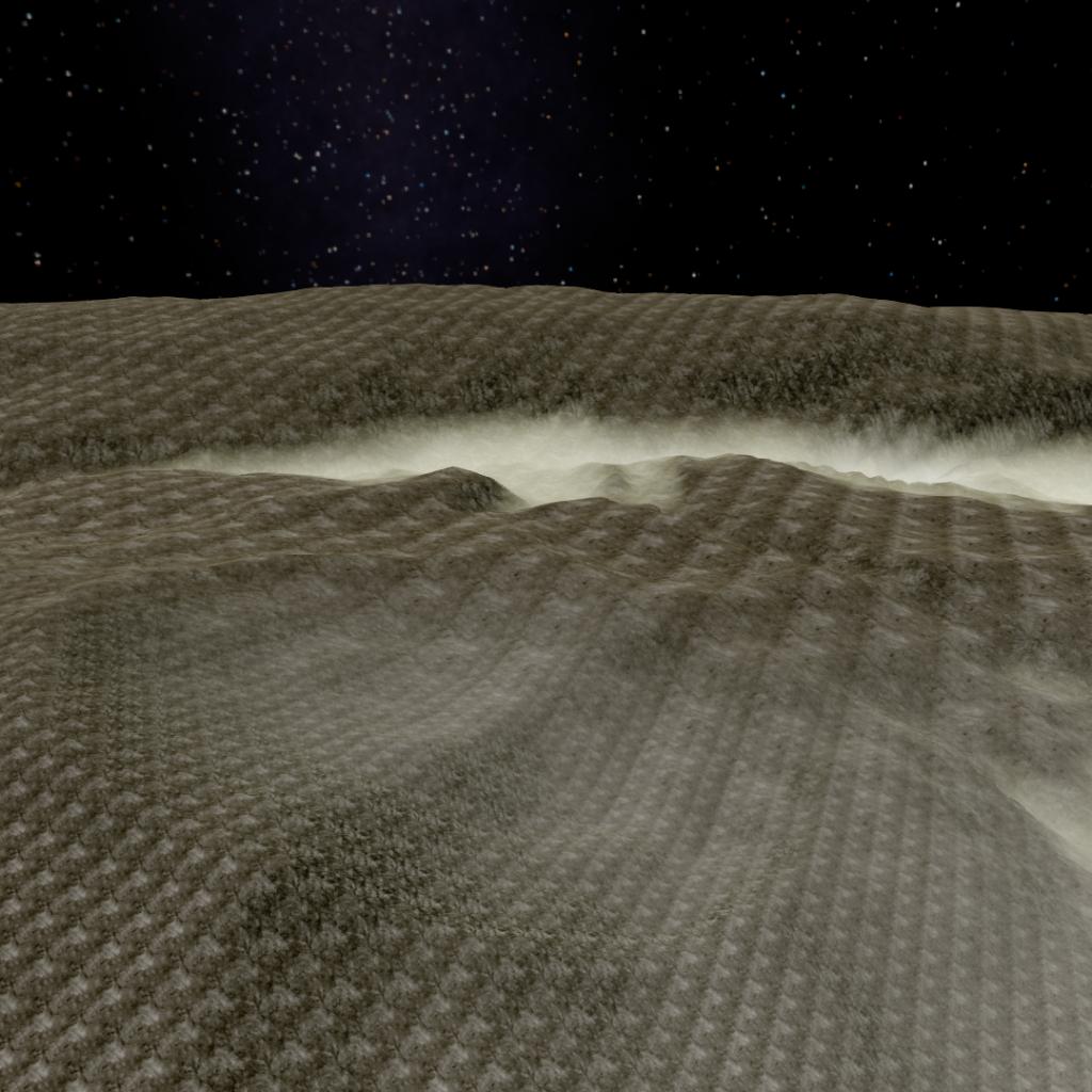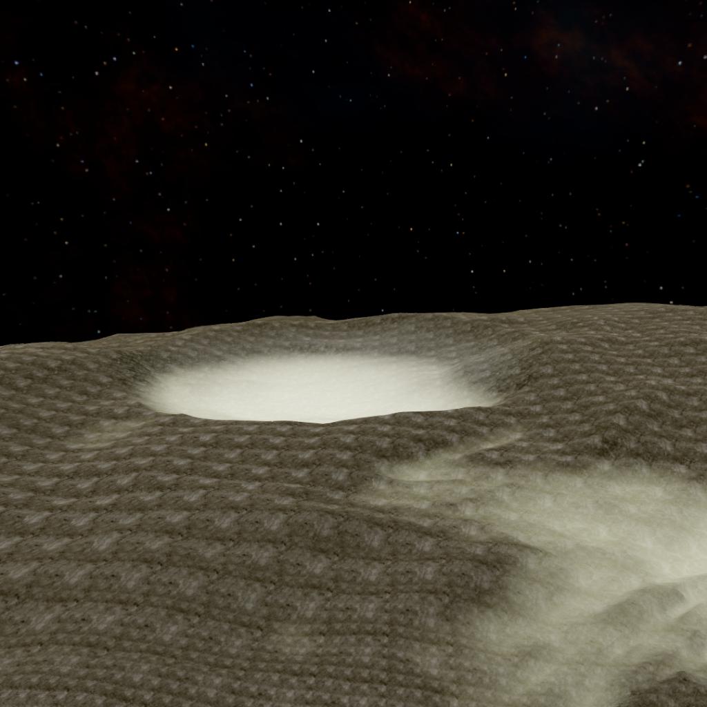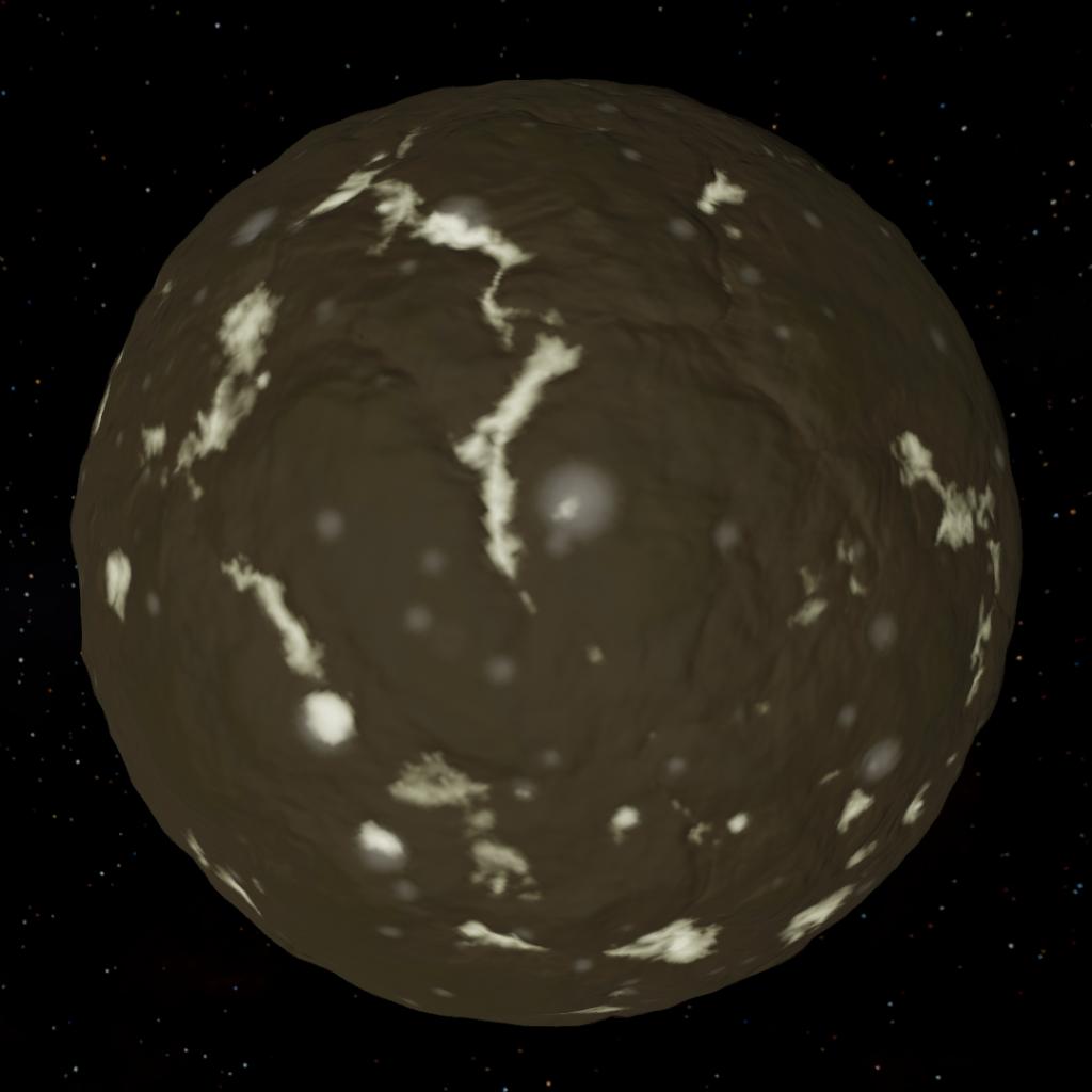 A dense, icy world, covered in a thick layer of brown dust which has been blasted away by impact craters over billions of years. Cryo's icy surface, beneath the dusty covers, is a smooth, serene place.