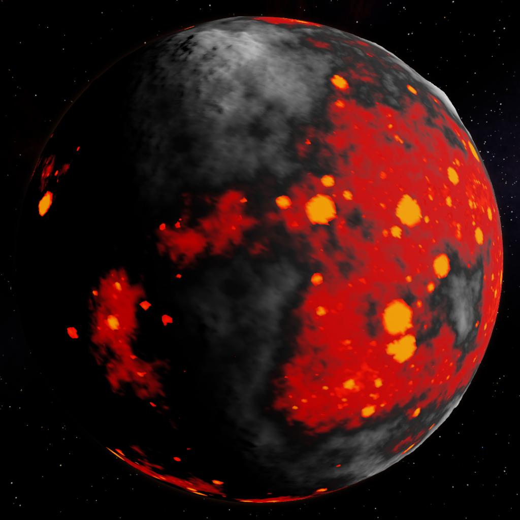 Artemis has strong signes of volcanisme in it's not too distant past which can still be seen by the glowing hot basalt dominating the lowest regions.