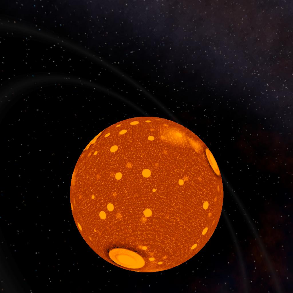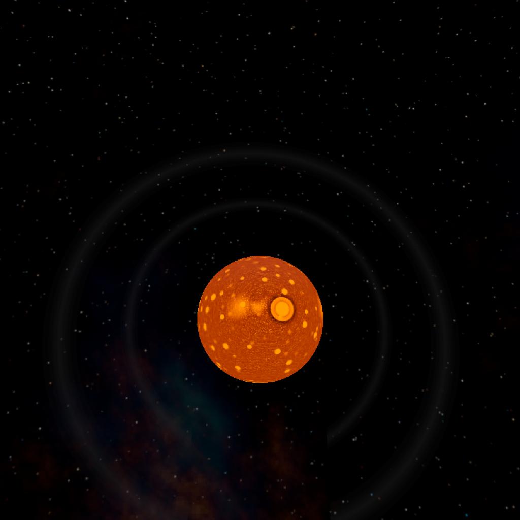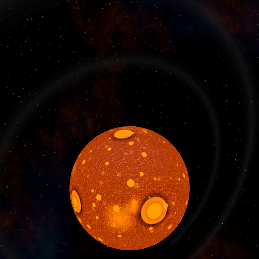 The second planet of the Geneos system. It's a hot ball of magma with many large craters caused by recent collisions and a set of small rings. The planet is still cooling down from all of the collisions. A small moon has also started forming around the planet as larger fragments started to collide and fuse.