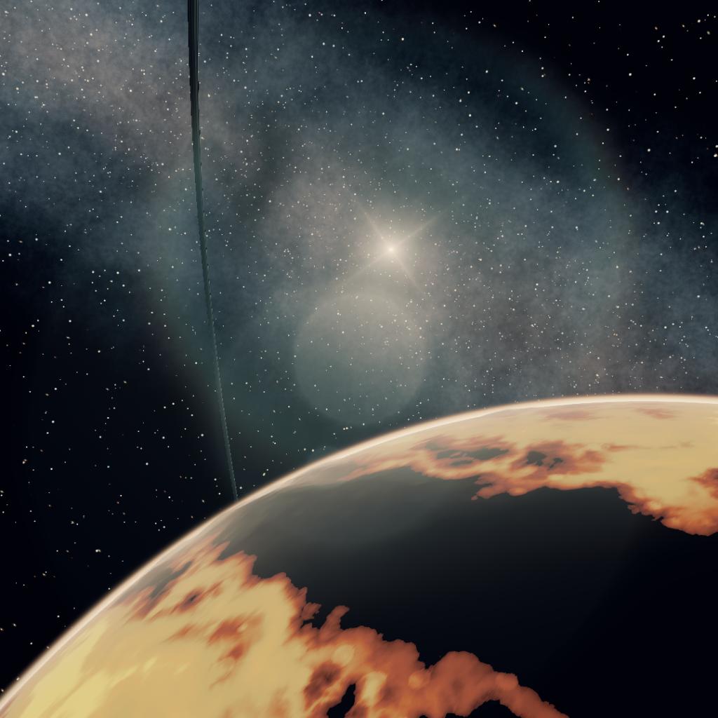 A sole survivor of the inainint "great moon massacre" Features large lava lakes. a thin ring, a thin atmosphere. The tidal forces pulling on its surface hss caused chaotic earthquakes and mountain formations. aswell as many craters come from the ring particles
