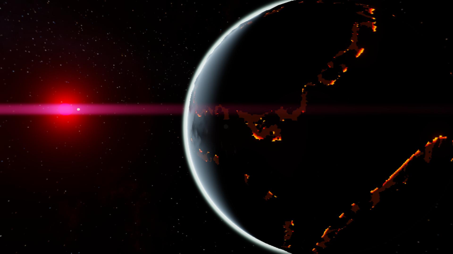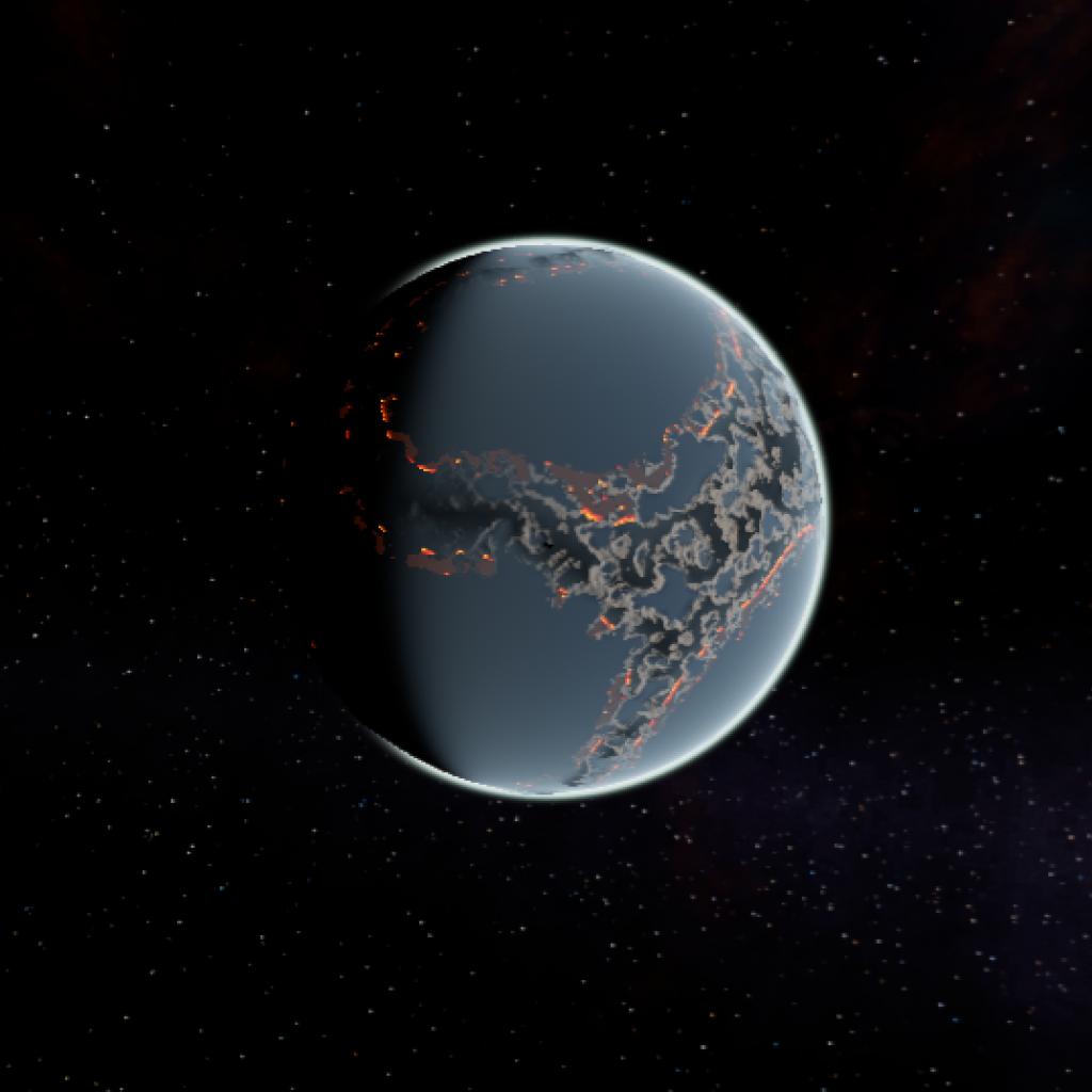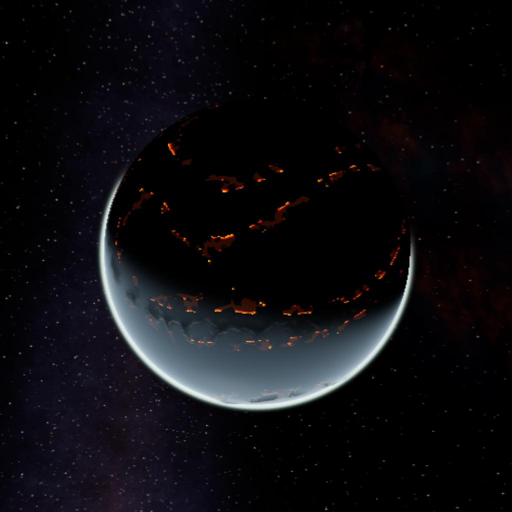 The second planet of the Fulcrum System. A highly volcanic, however habitable planet with a slightly green atmosphere. Has been colonized, and includes several space ports. This planet hosts many mountain chains, of which are unusually large, as well as lava lakes. Extremely large tides are produced due to the large moon.