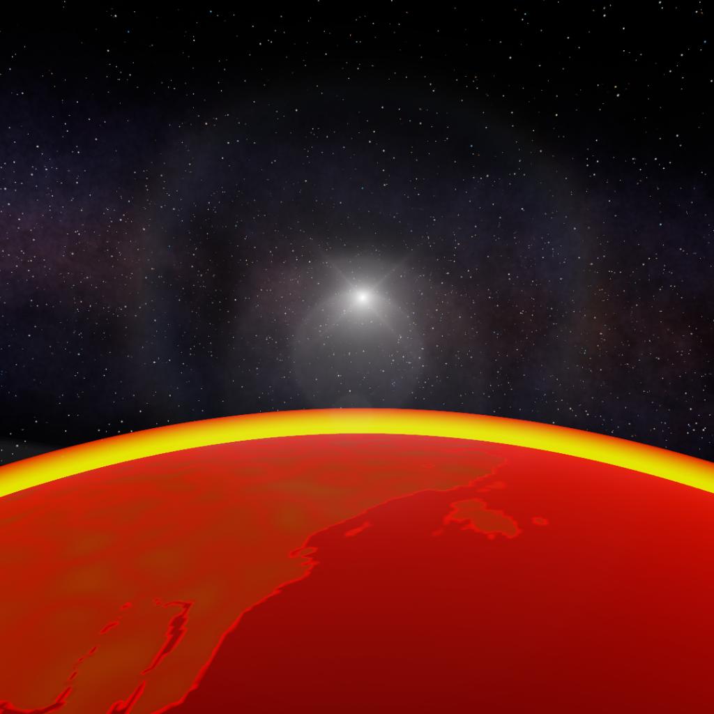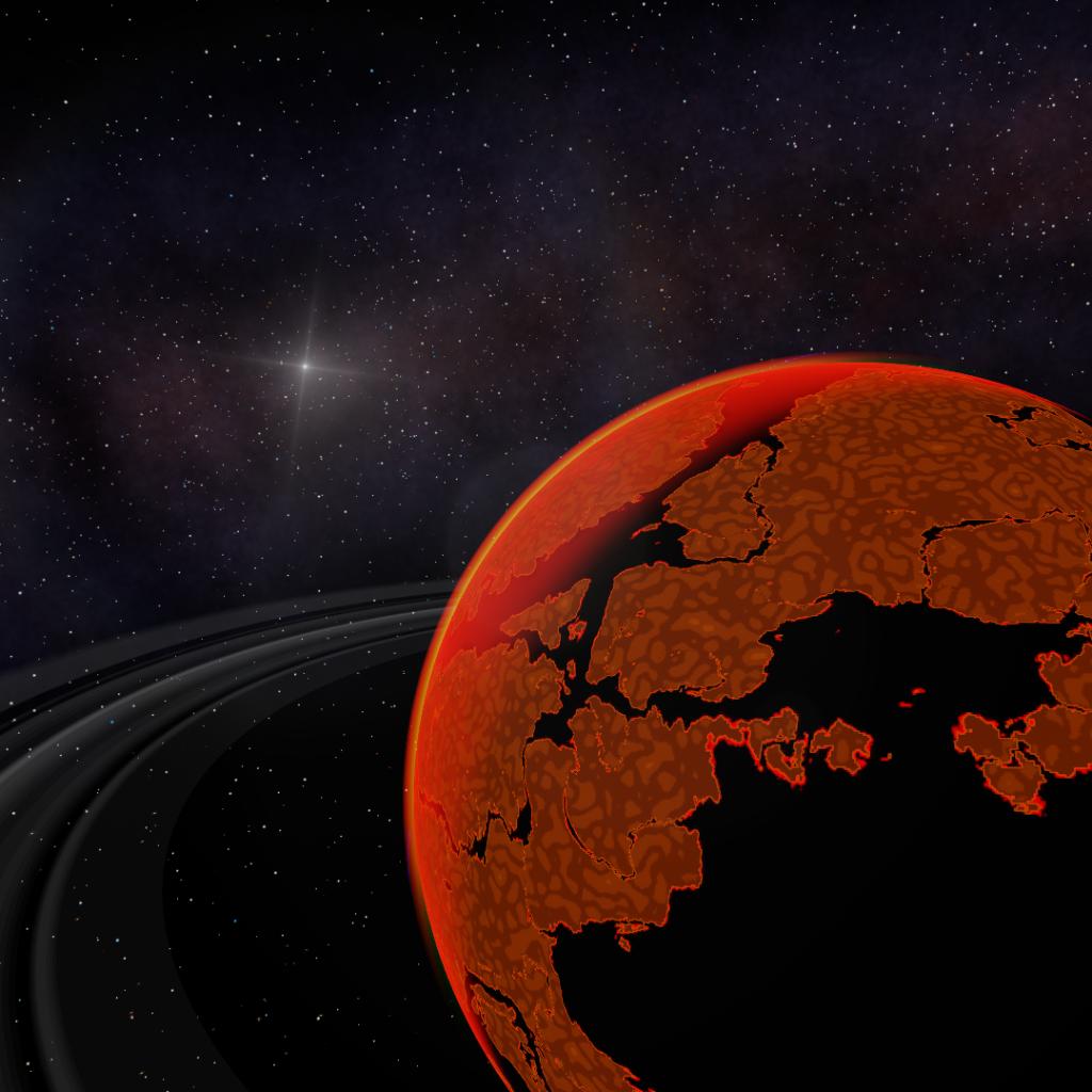 A weird planet with glowing orange vegetation, black oceans with red "outlines", size 3x larger than Earth and other anomalous properties.