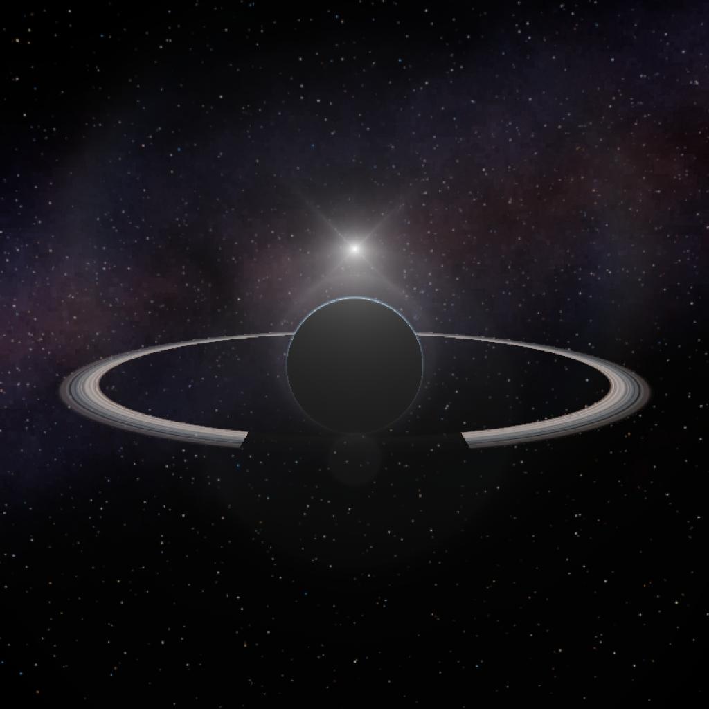 A planet mostly covered in water, with a ring system and low temperatures due to it's distance from Helios.