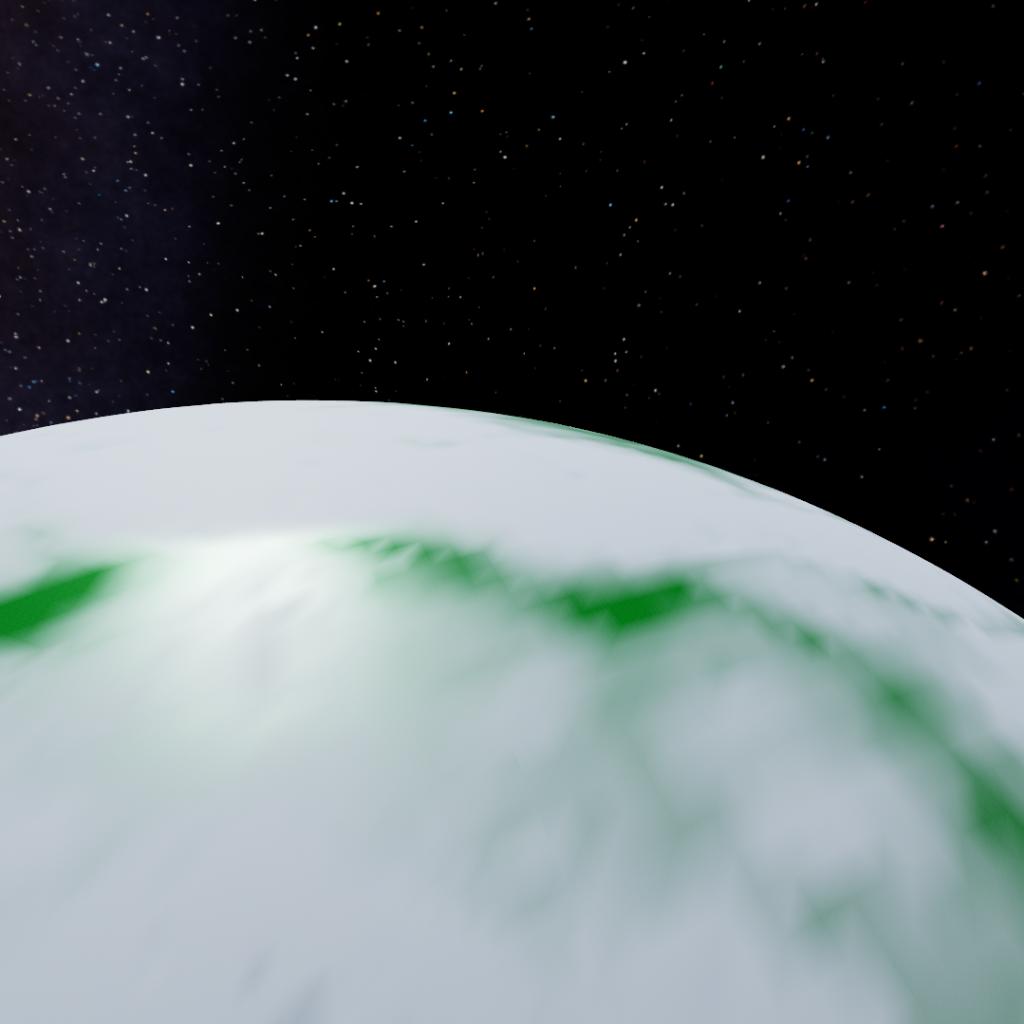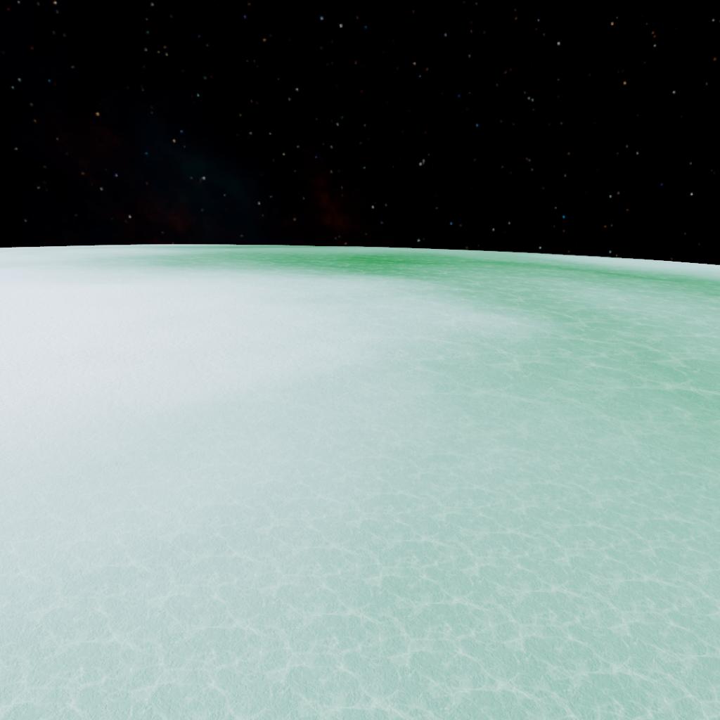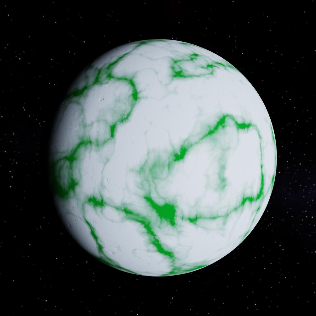 A cold solid icy moon of Tydos with craters, green cracks and a underwater global ocean.
