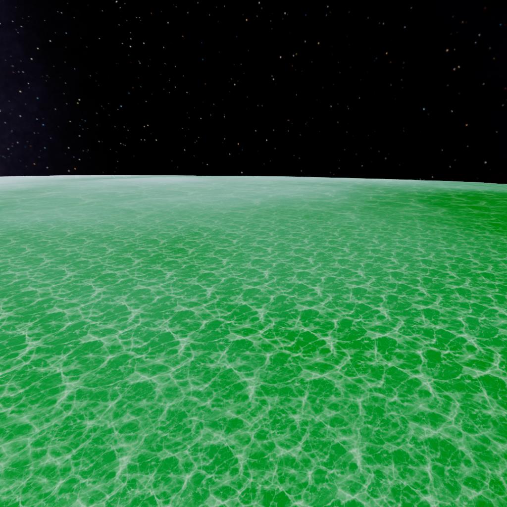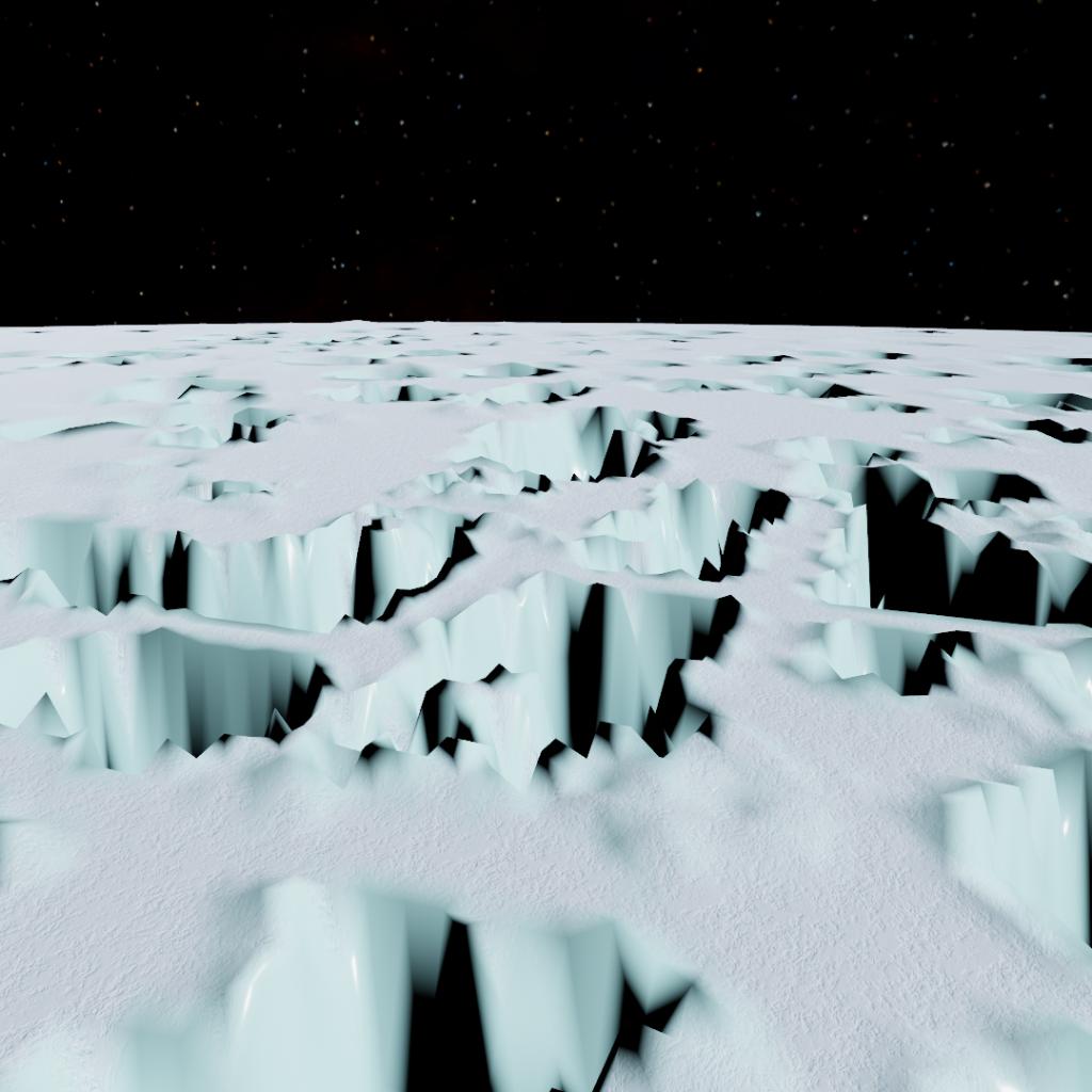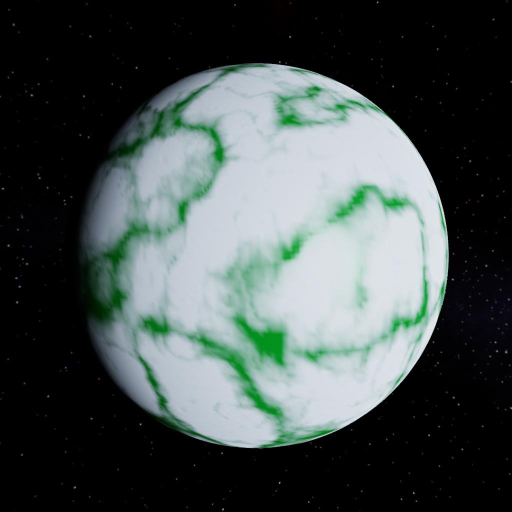 A cold solid icy moon of Tydos with craters, green cracks and a underwater global ocean.