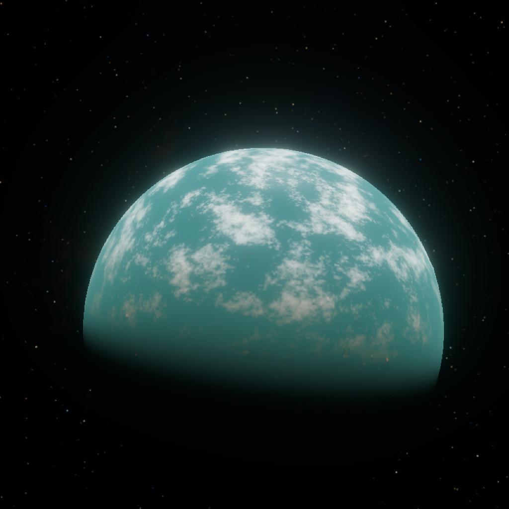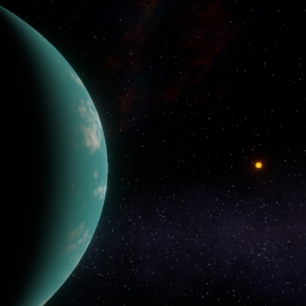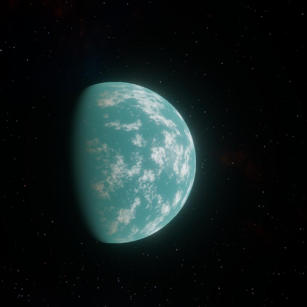 4347 E is a supermarine subterra, smaller than Droo and covered in a warm ocean, heated up by the high volcanic activity. The planet orbits close to 4347 D at around 11Gm and is likely to house some forms of life. The dense atmosphere helps this Planet retain heat and maintaining a good surface temperature. The planets orbit appears to be surprisingly perfectly circular even though it orbits close to 4347 D.