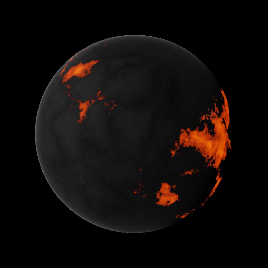Levantes is the first and most chaotic moon of zeus, because of its short orbit around zeus, there are lava oceans all around the moon. the surface is pretty dark and dusty, but it has a white haze making the moon slightly visible to humans.