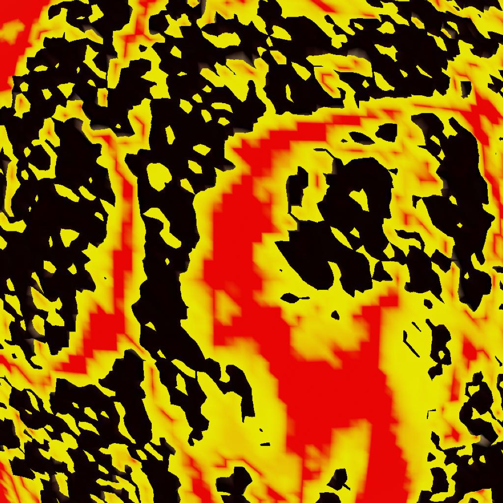 A rocky celestial body covered in cracks containing rivers of lava with a very irregular crust.